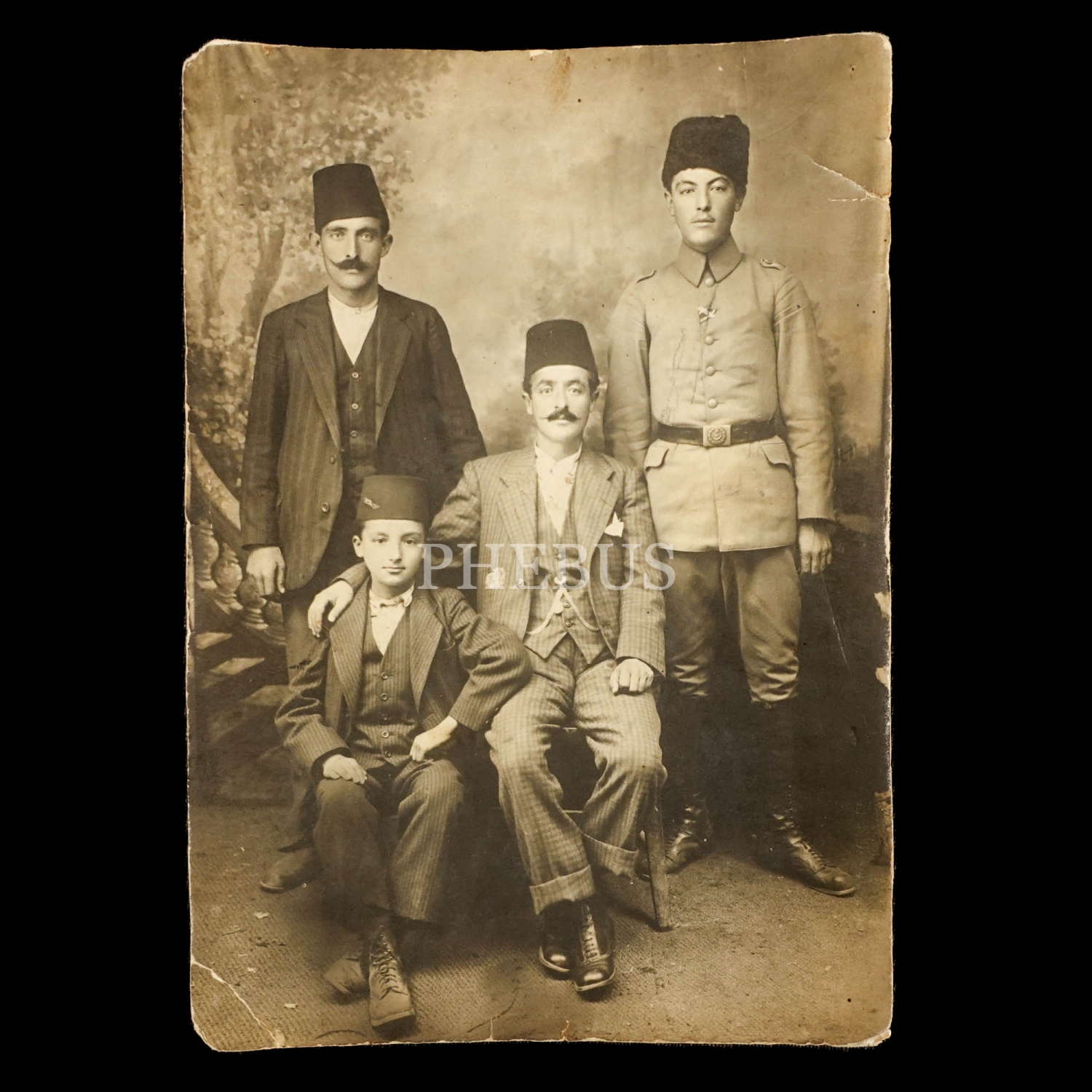 Aralarında Çanakkale Madalyalı bir subayın da yer aldığı grubun stüdyo hatıra fotoğrafı, 10x14,5 cm...
