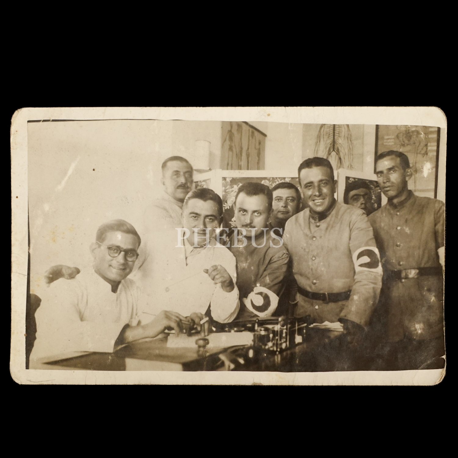 Bir tabip subayın, kurduğu revirde çalıştığı mesai arkadaşlarıyla birlikte aldırdığı hatıra fotoğrafı, 23 Ağustos 1941, 14x9 cm...