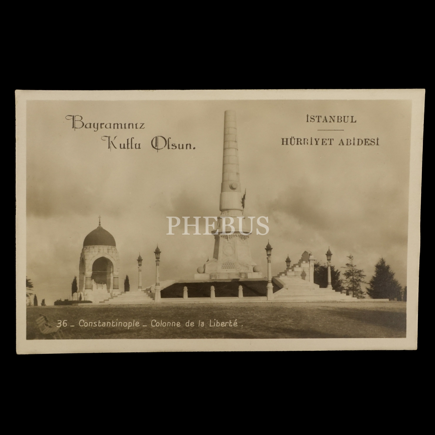 Abide-i Hürriyet görselli bayram tebrik kartı, ed. Grande Librairie Mondiale, Constantinople, 14x9 cm...