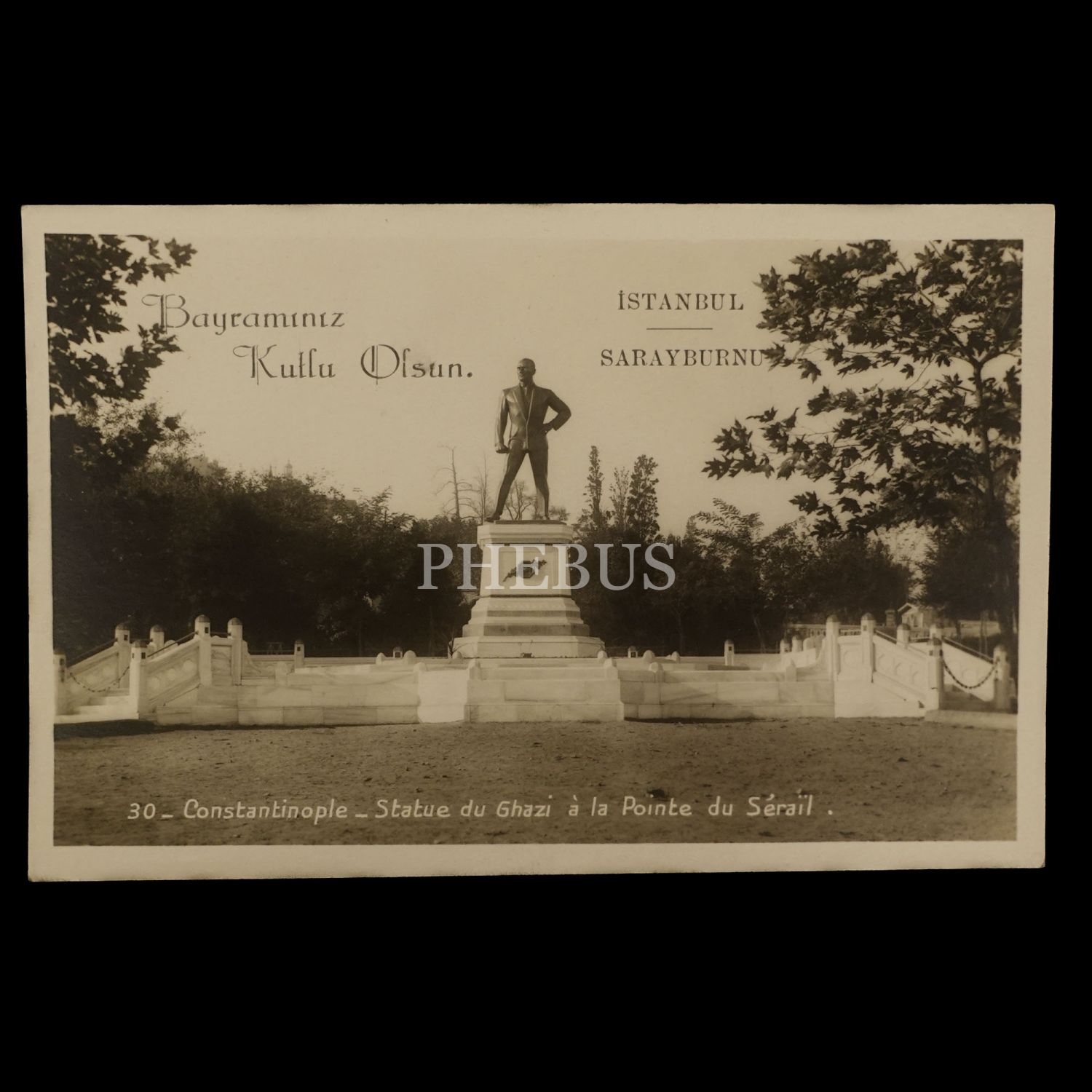 Sarayburnu Atatürk Anıtı görselli bayram tebrik kartı, ed. Grande Librairie Mondiale, Constantinople, 14x9 cm...