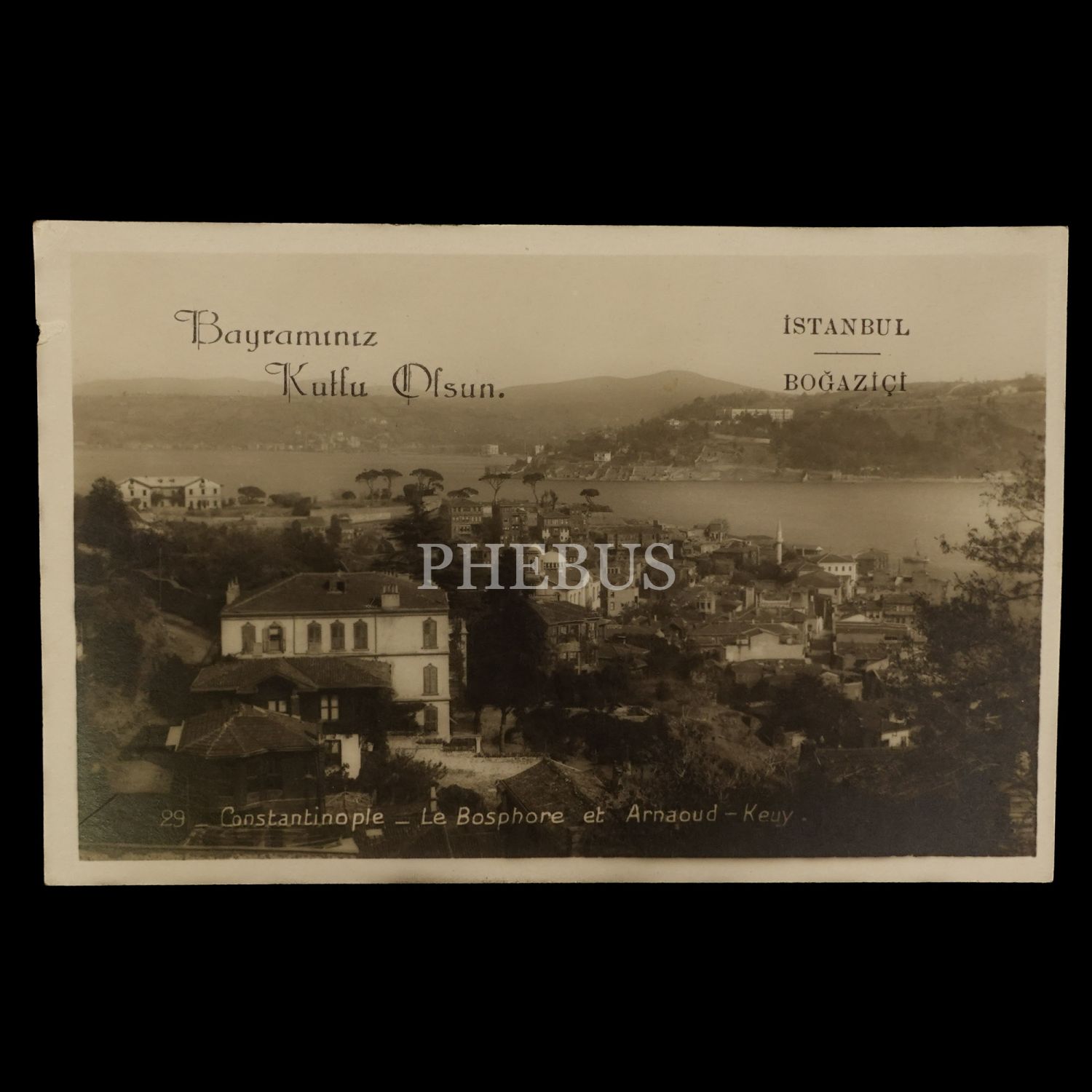 Boğaziçi görselli bayram tebrik kartı, ed. Grande Librairie Mondiale, Constantinople, 14x9 cm...
