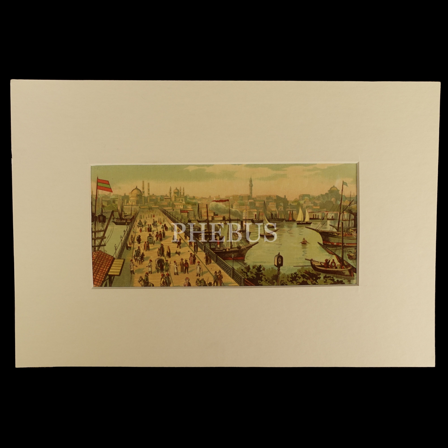 Ahşap Galata Köprüsü görselli fes etiketi, paspartusuyla birlikte 32x21 cm...