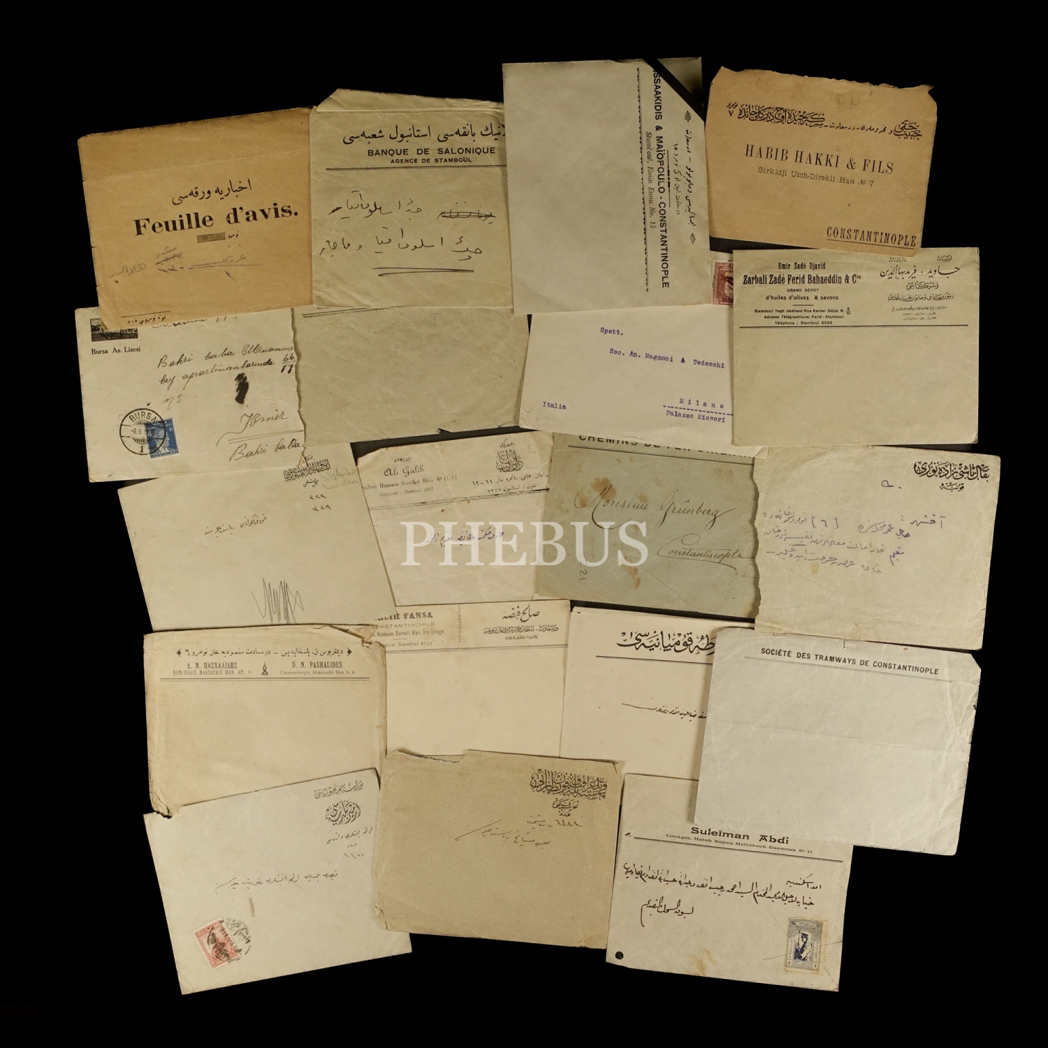 Osmanlı ve Cumhuriyet dönemlerinden antetli mektup zarflarından oluşan 19 parçalık lot....