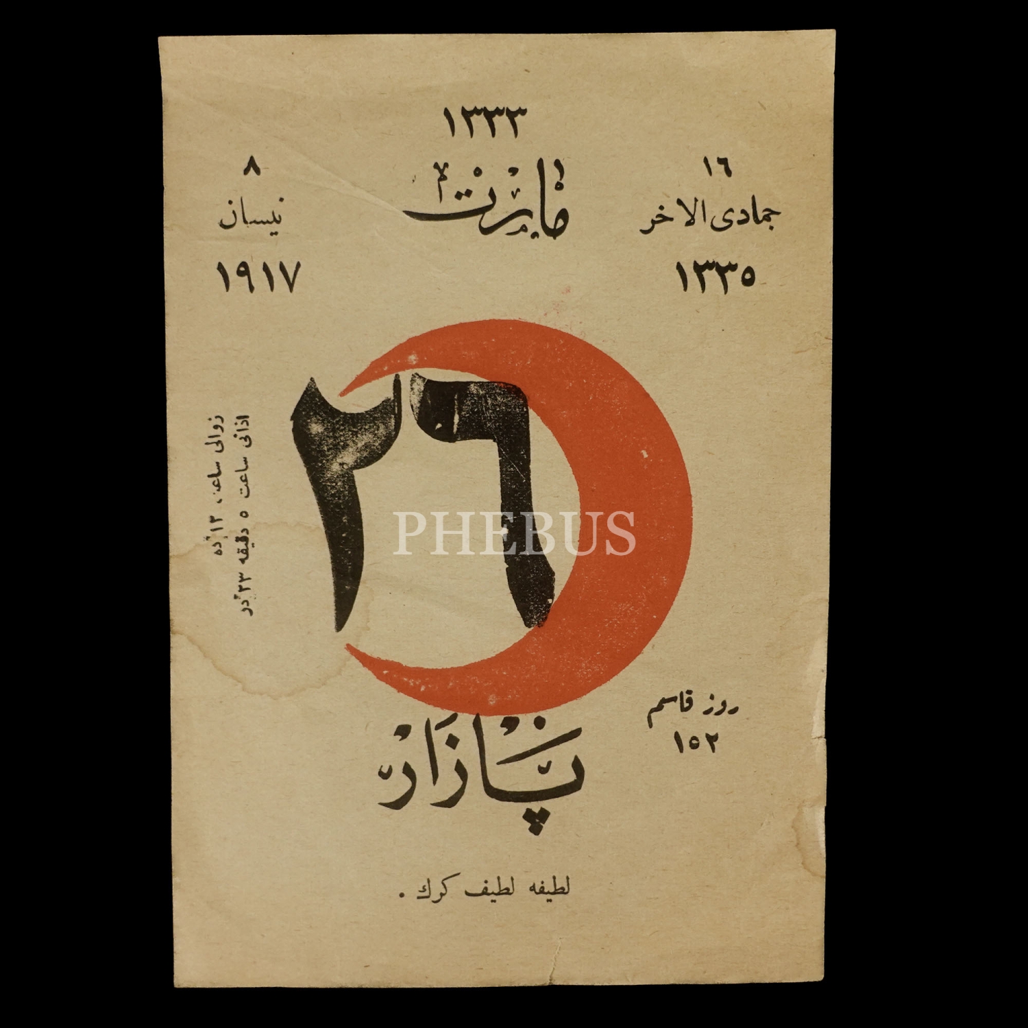 26 Mart 1333 tarihinin Hilal-i Ahmer Takvimi´nden çıkma takvim yaprağı, 10x13 cm...
