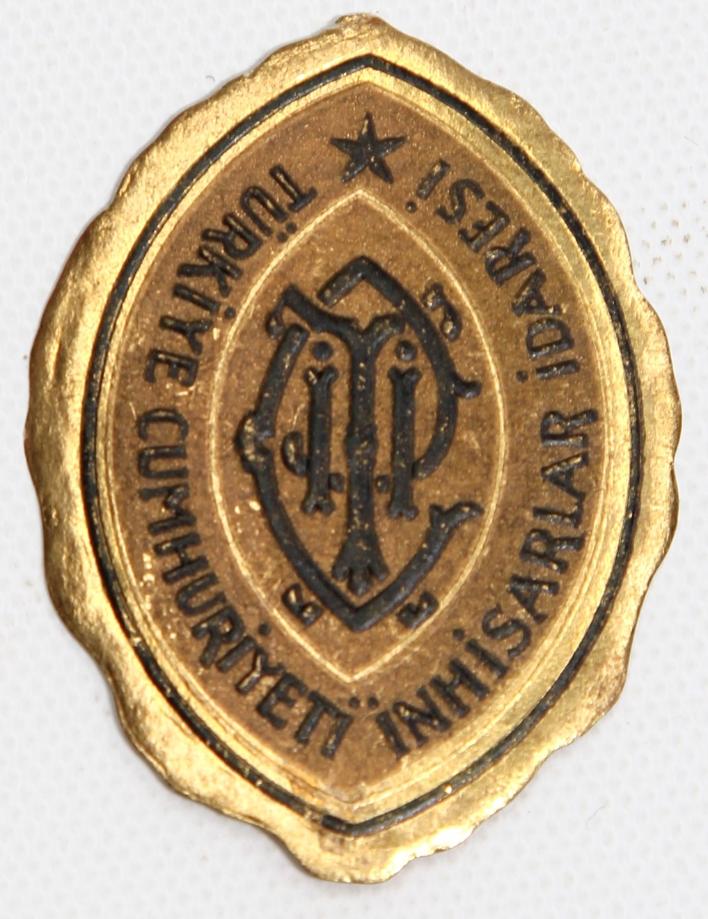 Türkiye Cumhuriyeti İnhisarlar İdaresi gofre kabartma vinyet, 3x2 cm