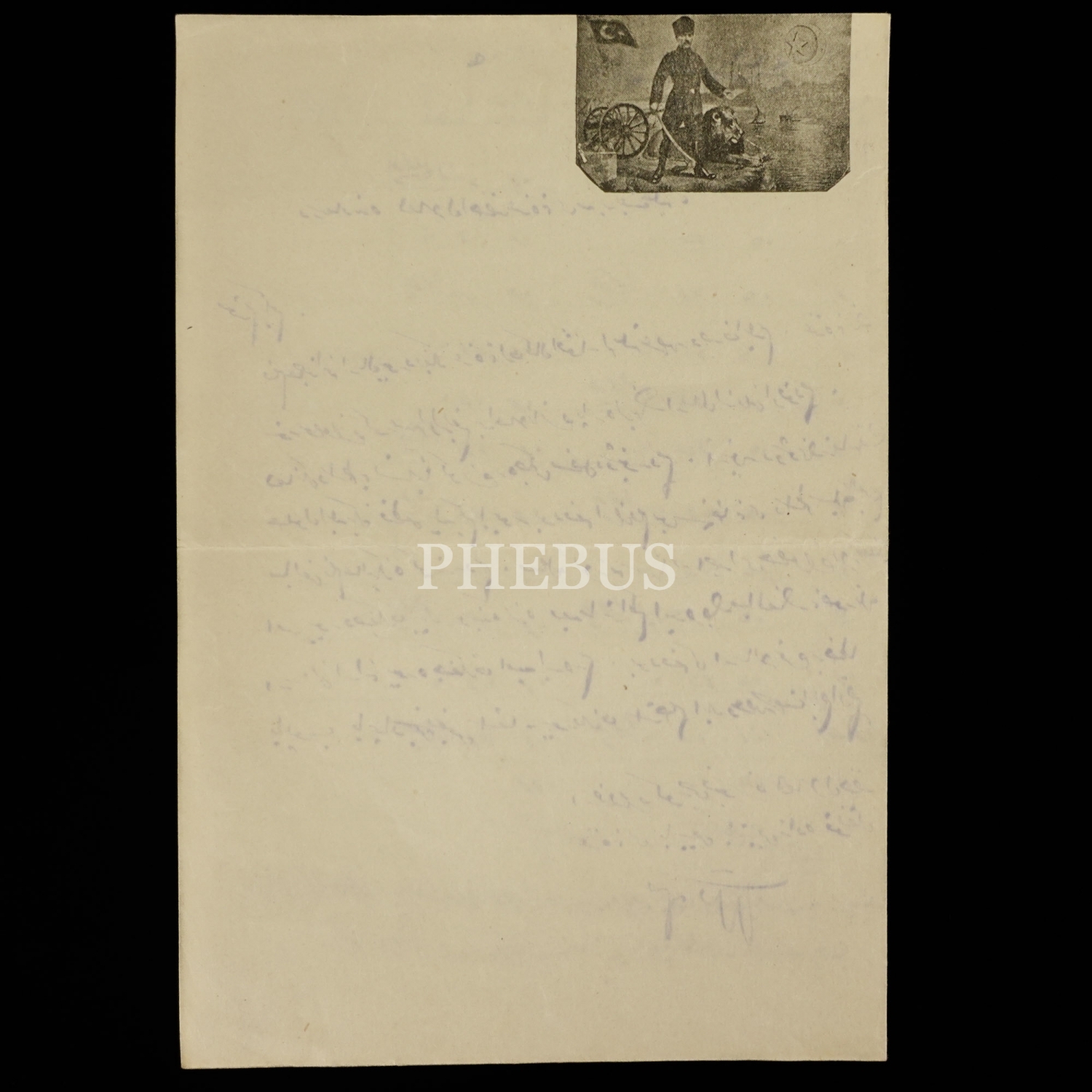 Erzurum´da Hilal-i Ahdar (Yeşilay) gazetesi bayii olan Yazıcızade Efendi´nin kendisine gönderilen gazetelerin ödemesi hususunda kaleme aldığı Mustafa Kemal Atatürk antetli mektup, 28x20 cm...