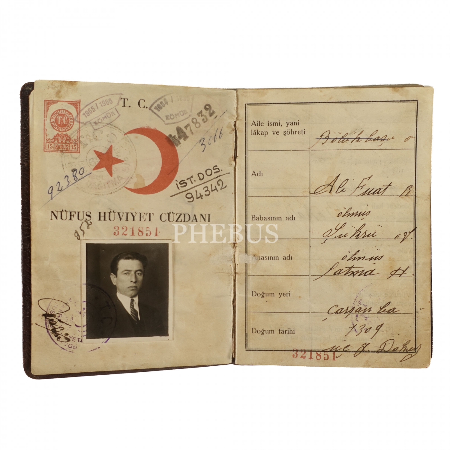Ali Fuat Başgil´e ait Nüfus Hüviyet Cüzdanı, 10x14 cm...