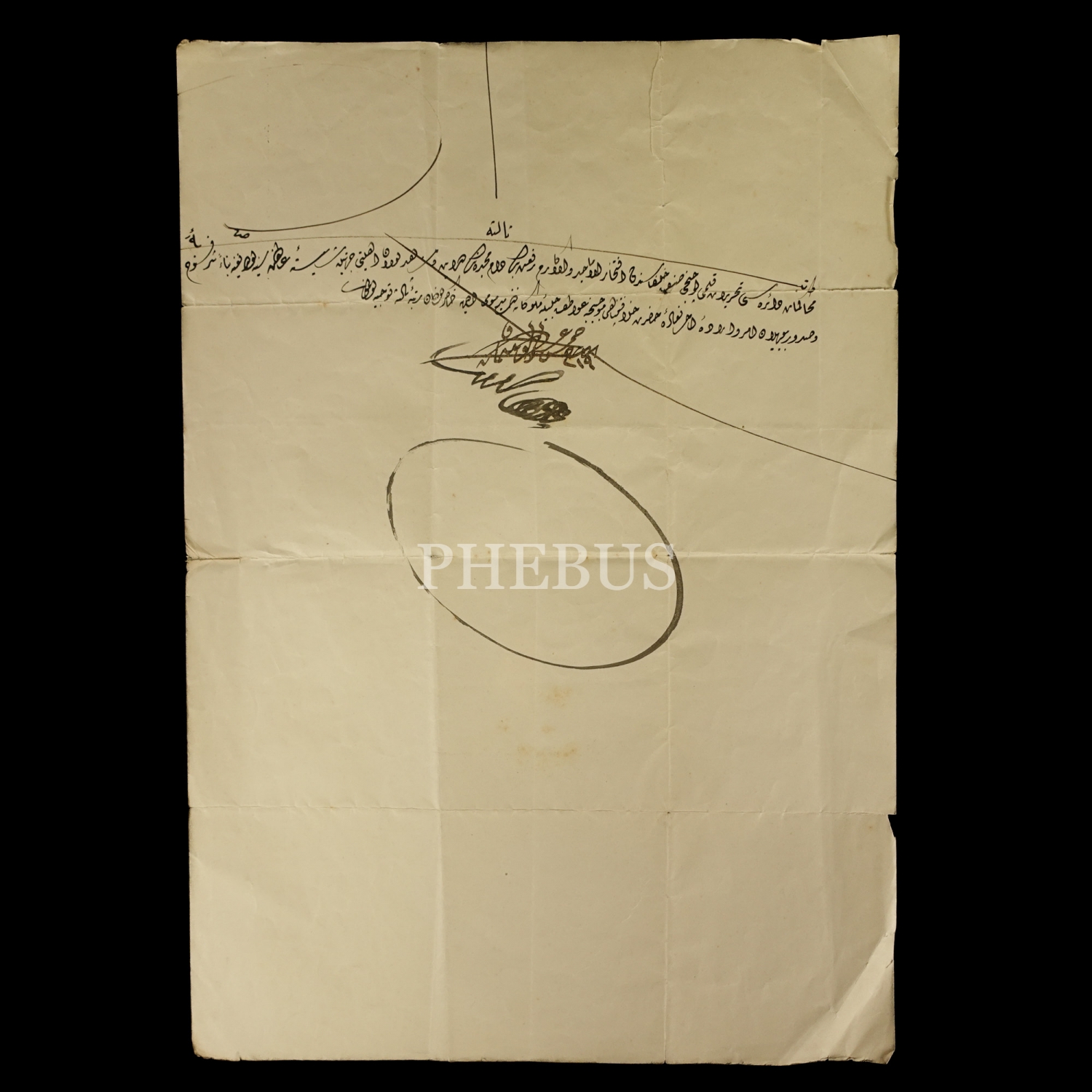 Muhakemat Dairesi görevlilerinden Rıfat Bey´e rütbe-i salise tevcih edildiğine dair Sultan II. Abdülhamid döneminde verilen berat, 19 Rebiülevvel 1315, 29x41 cm...