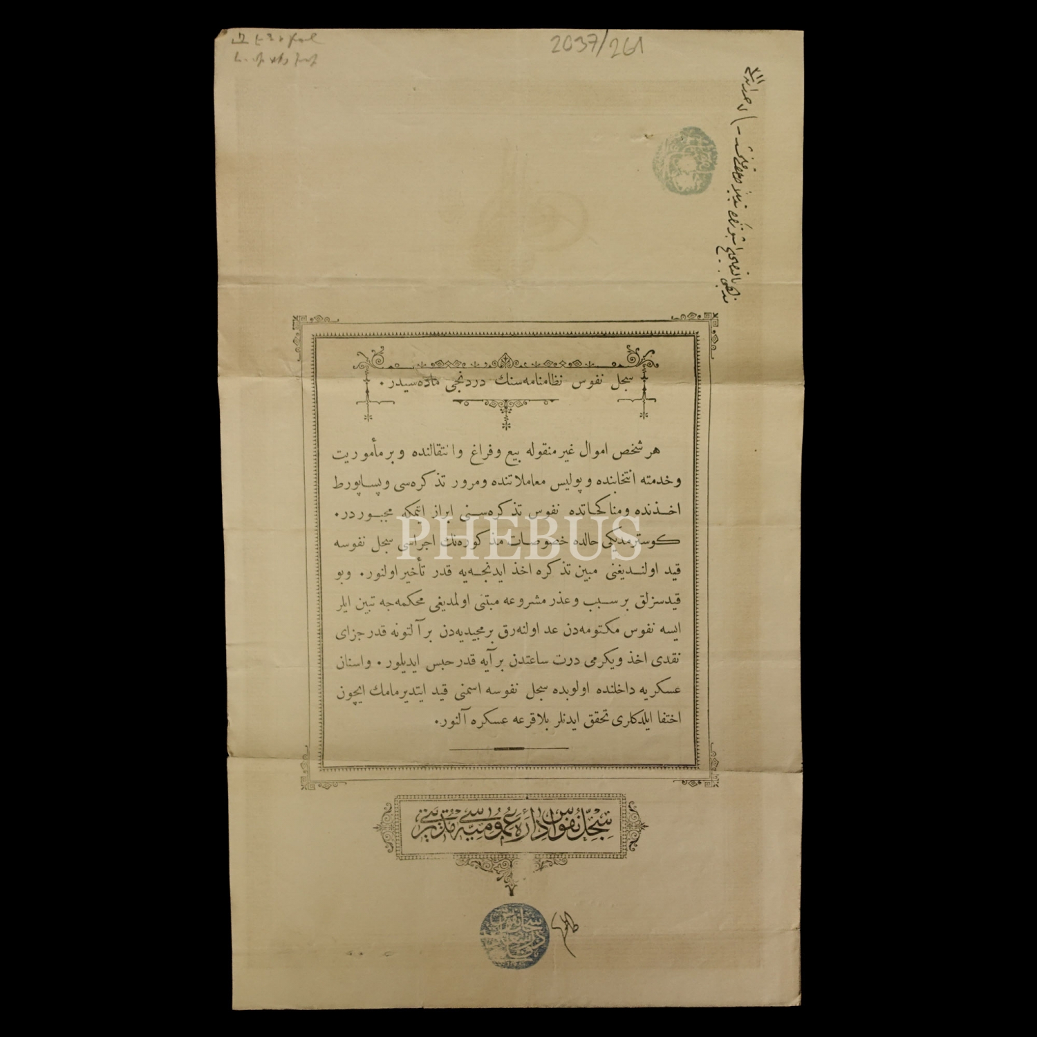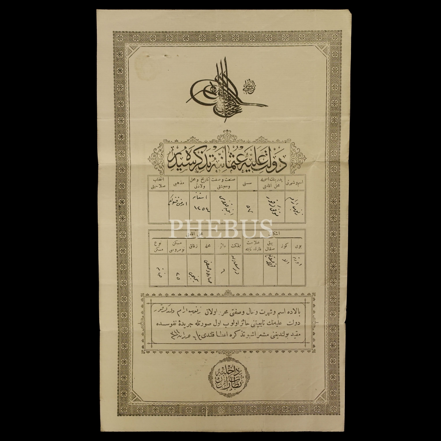 Kirkor Efendi´nin oğlu Aram Efendi´nin Sultan İkinci Abdülhamid tuğralı kimliği, 17x29 cm...