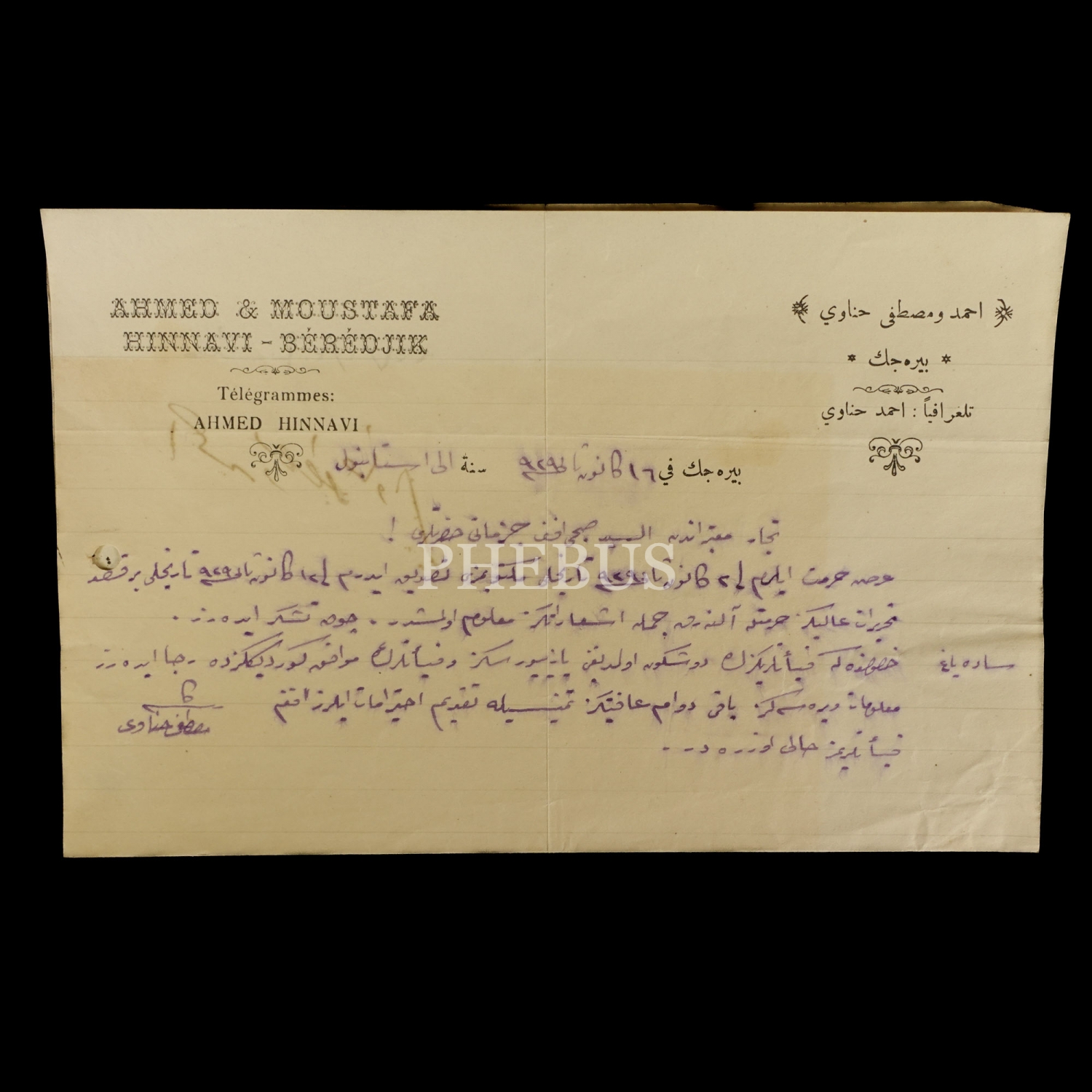 "Ahmed ve Mustafa Hanevi - Berecik" antetli fatura, 21x27 cm...