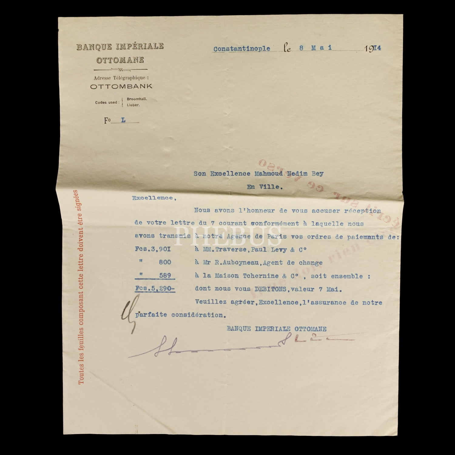 "Banque Imperiale Ottomane" antetli fatura, 1914, 21x27 cm...