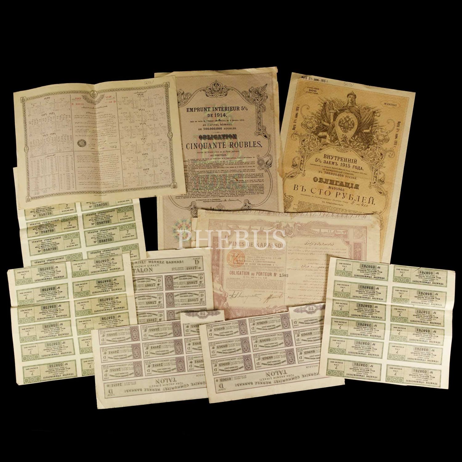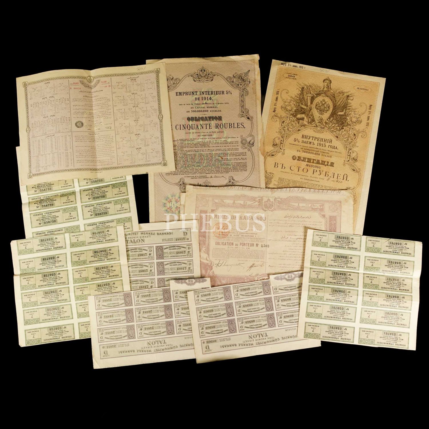 Yerli ve yabancı hisse senedi, kuponu lotu, 10 parça muhtelif ebatlarda...