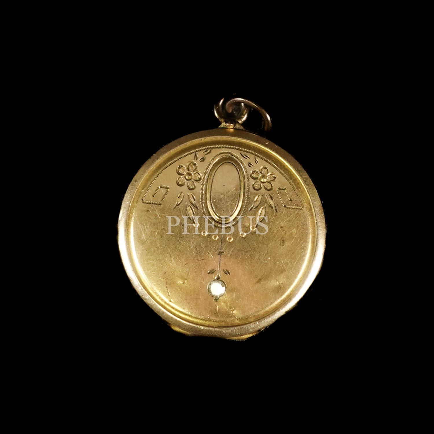 20. yüzyıl başlarından gövdesi kalem işçilikli ve pırlanta taşlı, açılır kapaklı, fotoğraf muhafazalı kolye ucu, çap 2,5 cm...