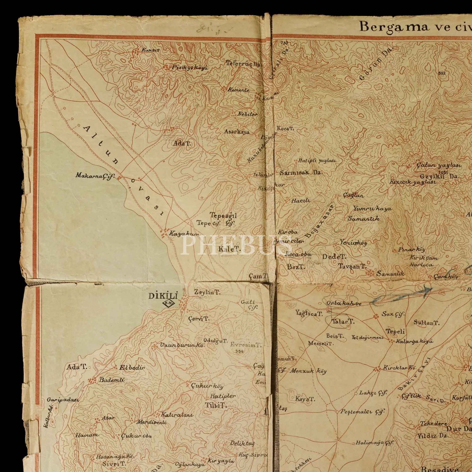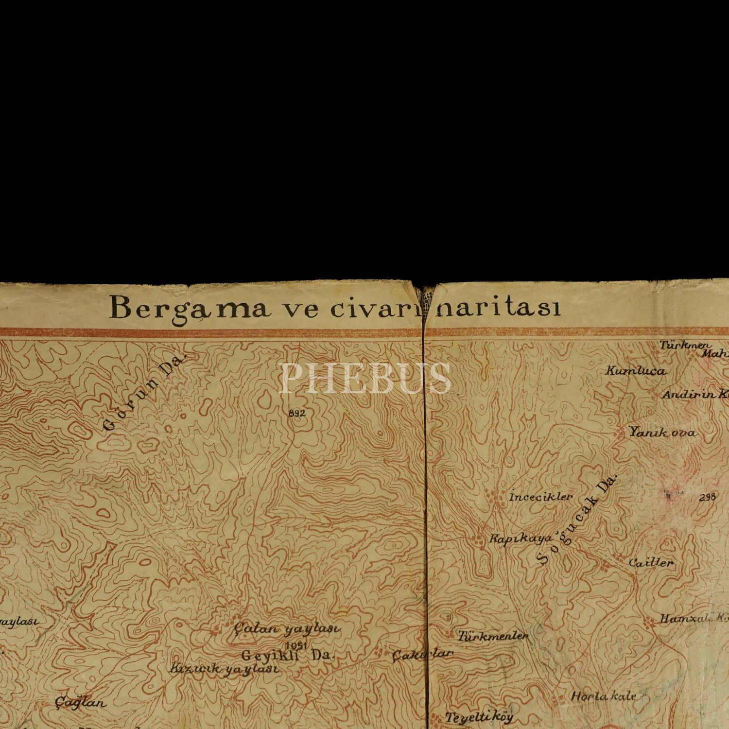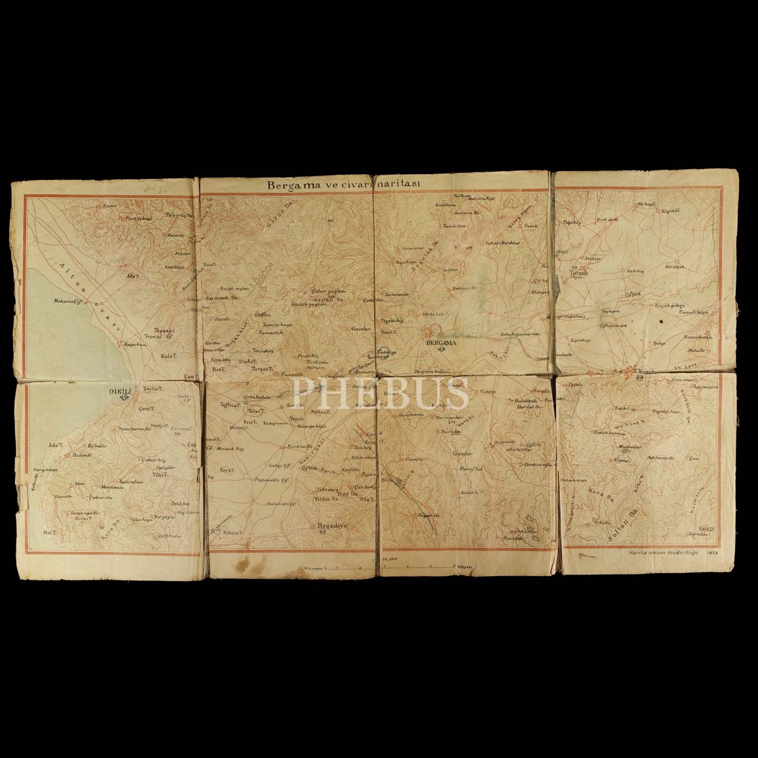 Bergama ve civari haritası, Harita Umum Müdürlüğü, 1932, 61x34 cm...