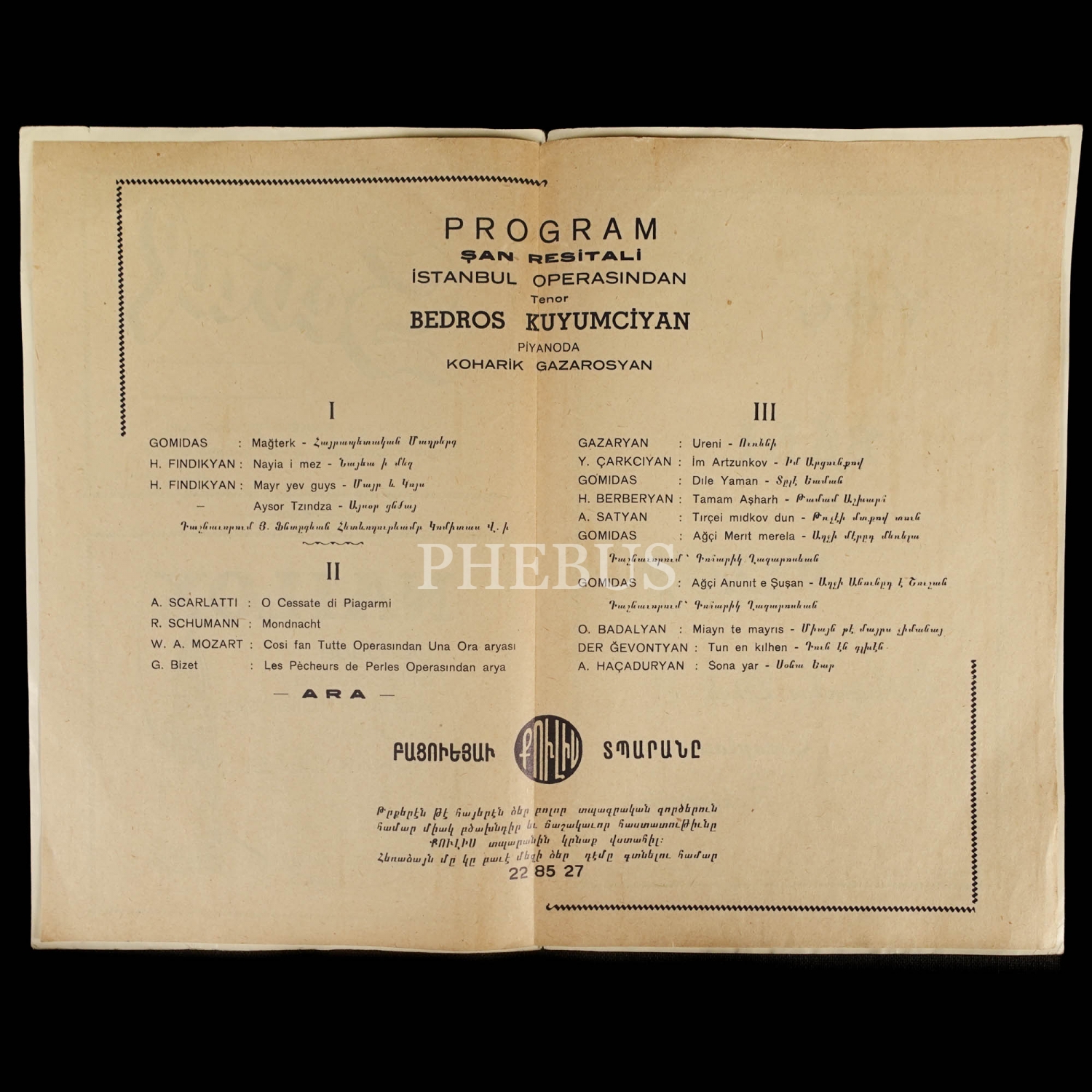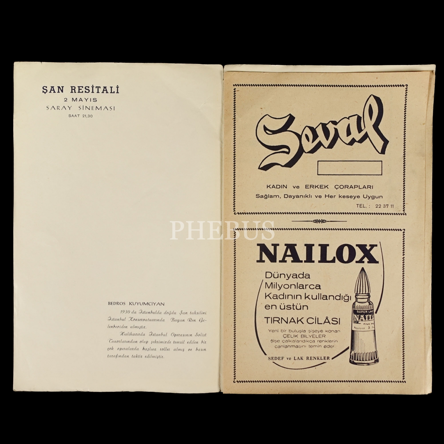 Bedros Kuyumciyan (Tenor) ile Koharik Gazarosyan (Piyano) tarafından Saray Sineması´nda düzenlenecek "Şan Resitali"nin, Türkçe - Ermenice programı,