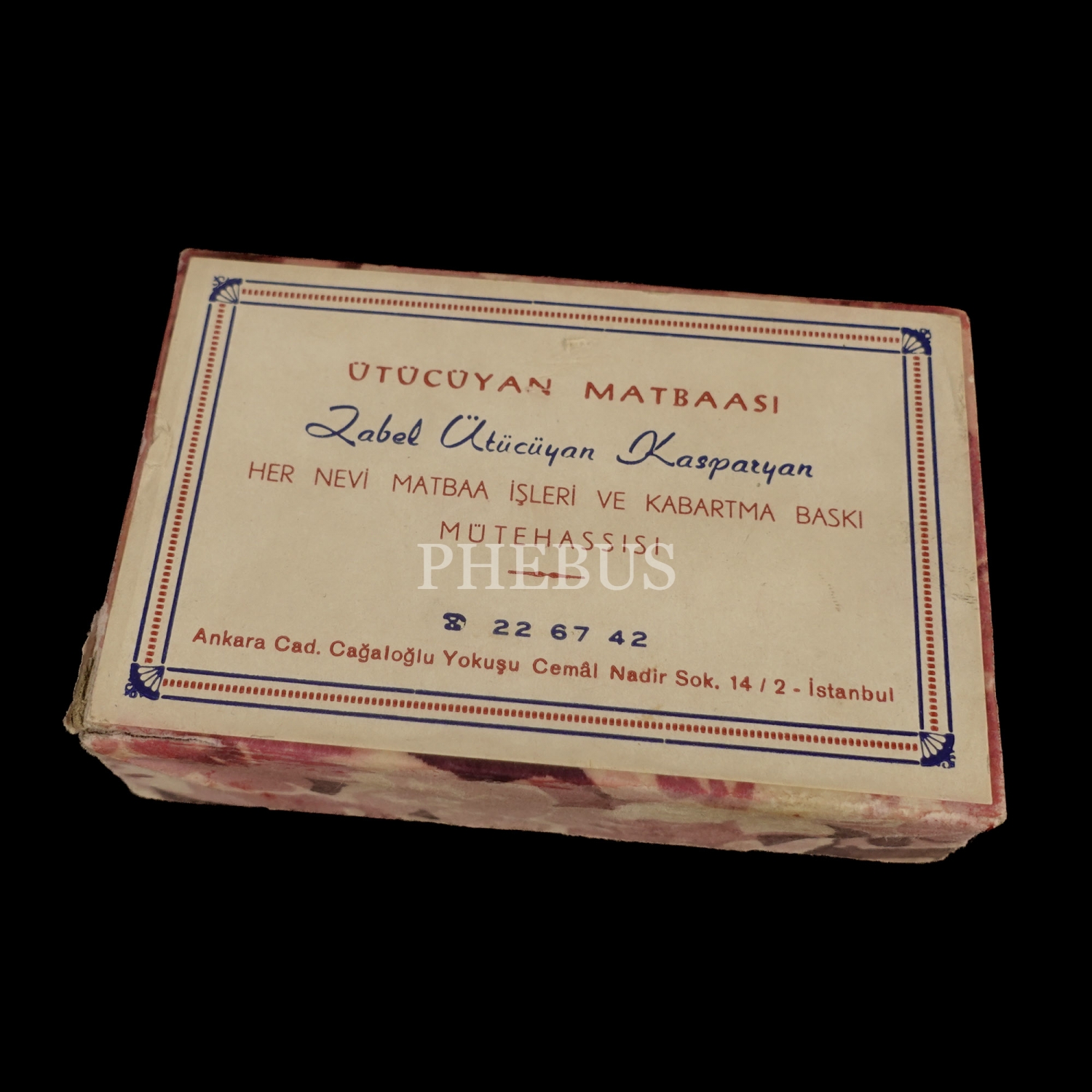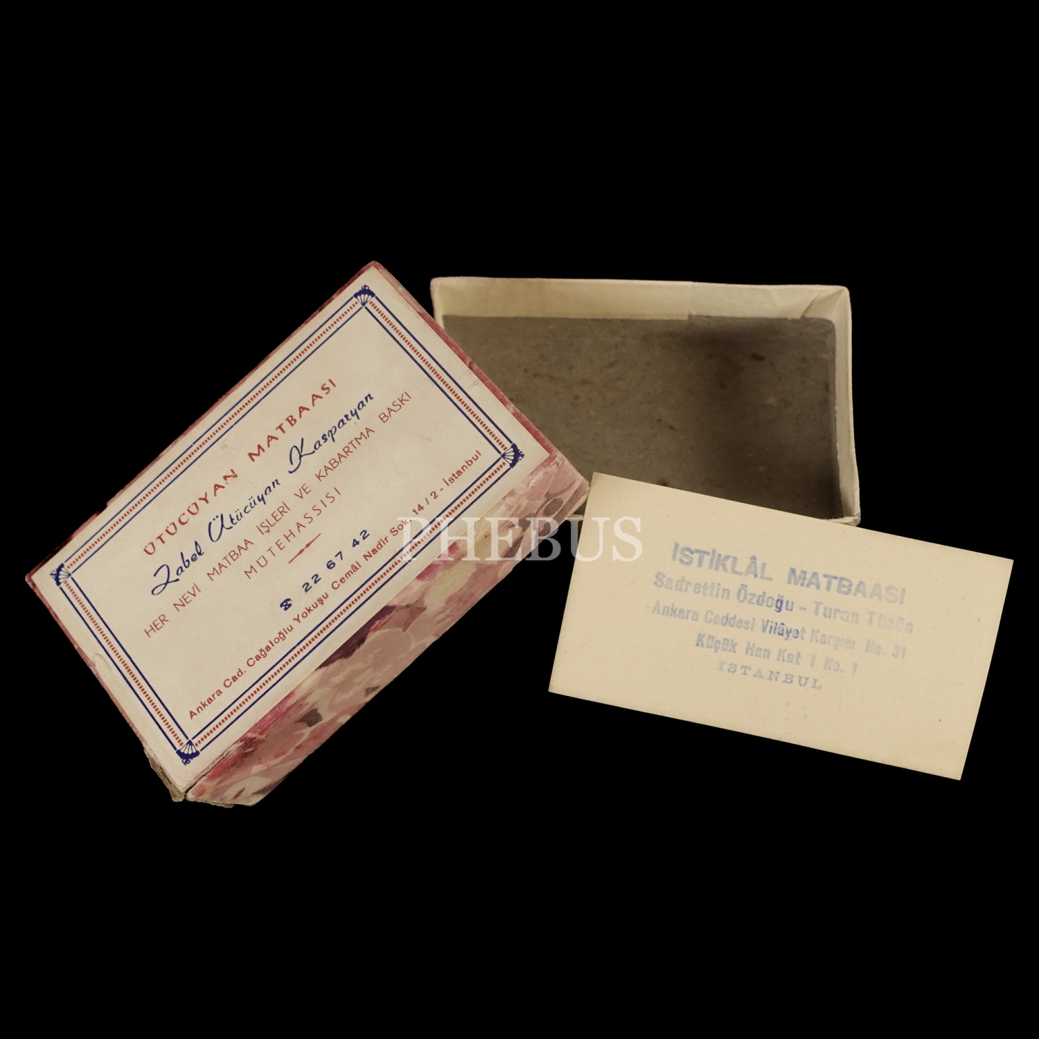 Kutu içeresinde İstiklâl Matbaası (Sadrettin Özdoğu - Turan Tüzün) kartviziti yer almaktadır.