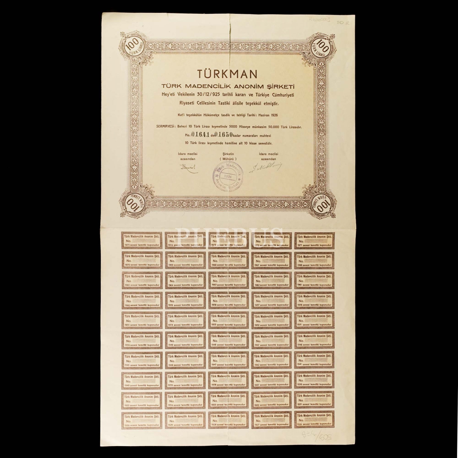 Türk Madencilik Anonim Şirketi (TÜRKMAN) temettü hisse senedi, 30x52 cm...