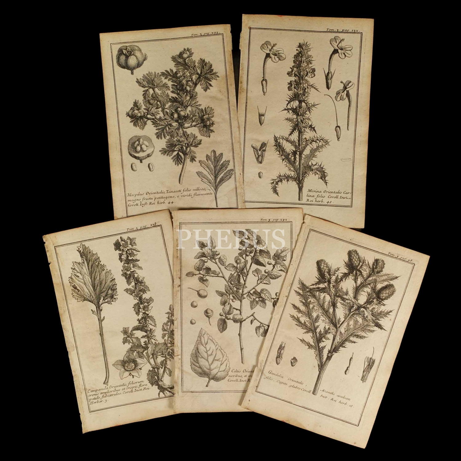 Bir botanik kitabından çıkma beş adet bitki gravürü, 12x19 cm...