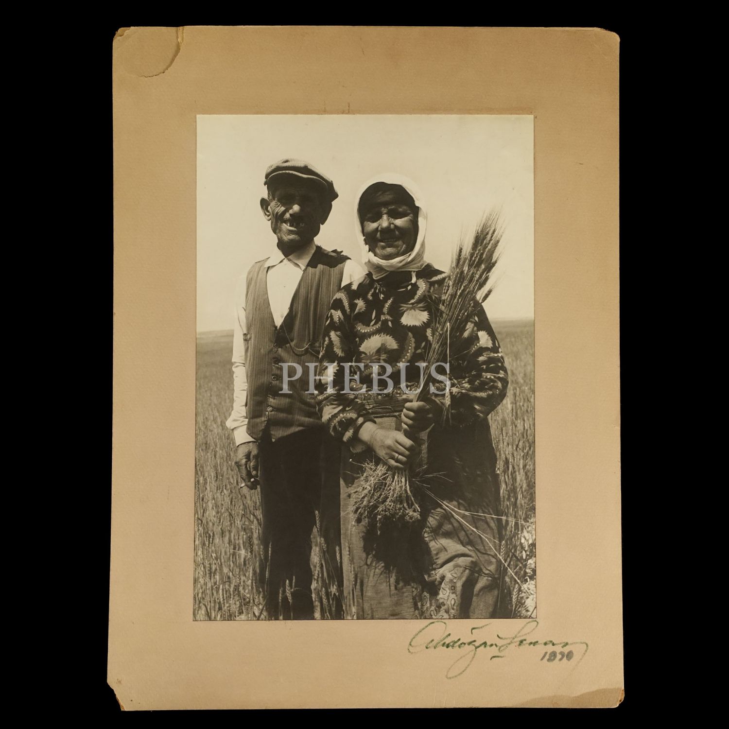 Fotoğraf sanatçısından ıslak imzalı köylü çift fotoğrafı, paspartusuyla birlikte 29x38 cm...