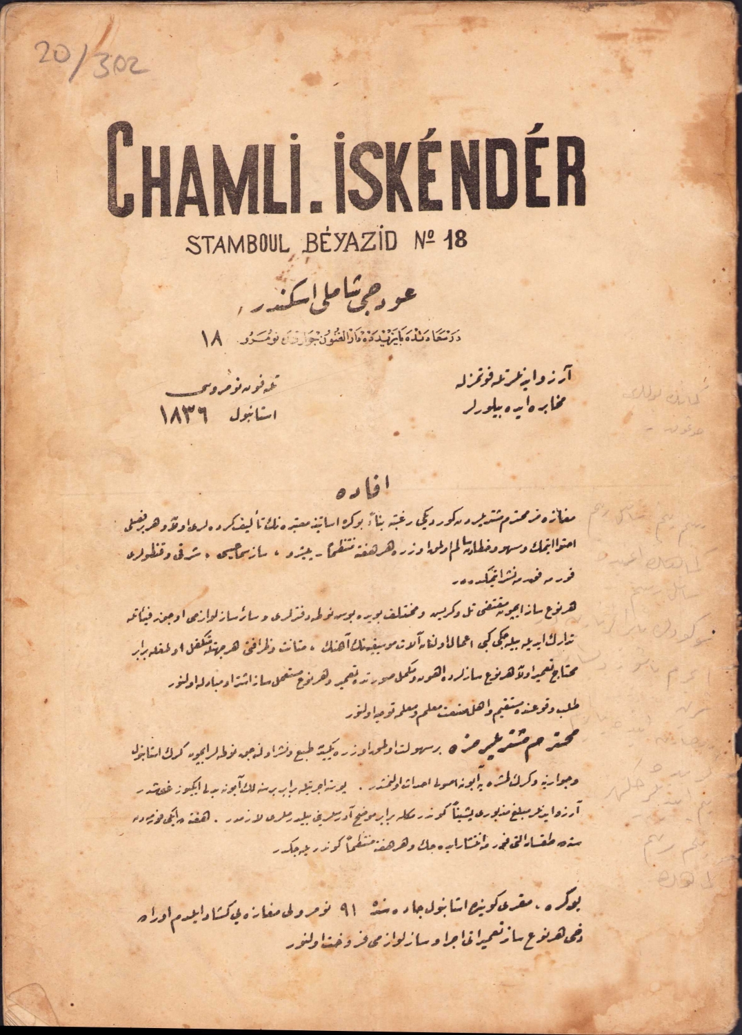 Osmanlıca nota, Yegah, udi Şamlı İskender, Evkaf Matbaası, 31 sayfa, sırtı haliyle, 20x28 cm