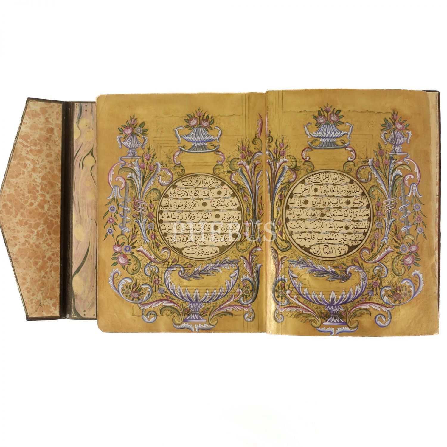 KURAN-I KERİM, ketebe: Mustafa Hamdi talebesi Seyyid Mehmed Şakir, 1294, rokoko tezhipli serlevhalı, tüm sayfaları tahrirli altın cetvelli, sure başları altın levhalı, ketebe sayfası tezyinatlı, 27x19 cm...