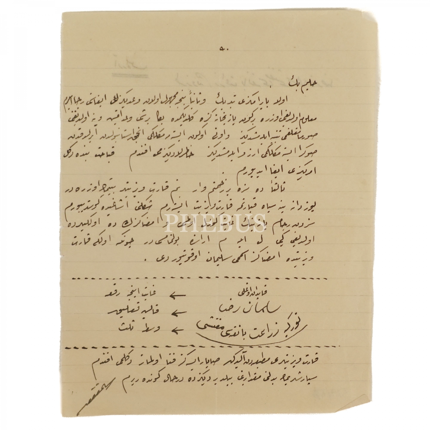 Trabzon Ziraat Bankası müfettişi Süleyman Rıza Bey´den Halim Özyazıcı´ya kartvizit siparişi mektubu, 19x15 cm...