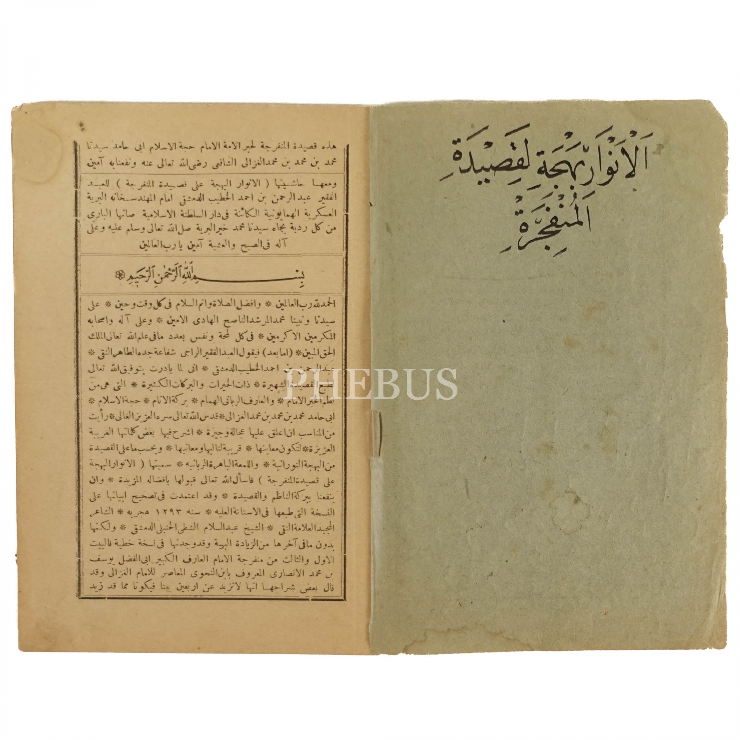 Halim Özyazıcı´dan kitap ismi yazısı, "el-Envaru´l Behce li Kasideti´l Münferice", 18x12 cm...