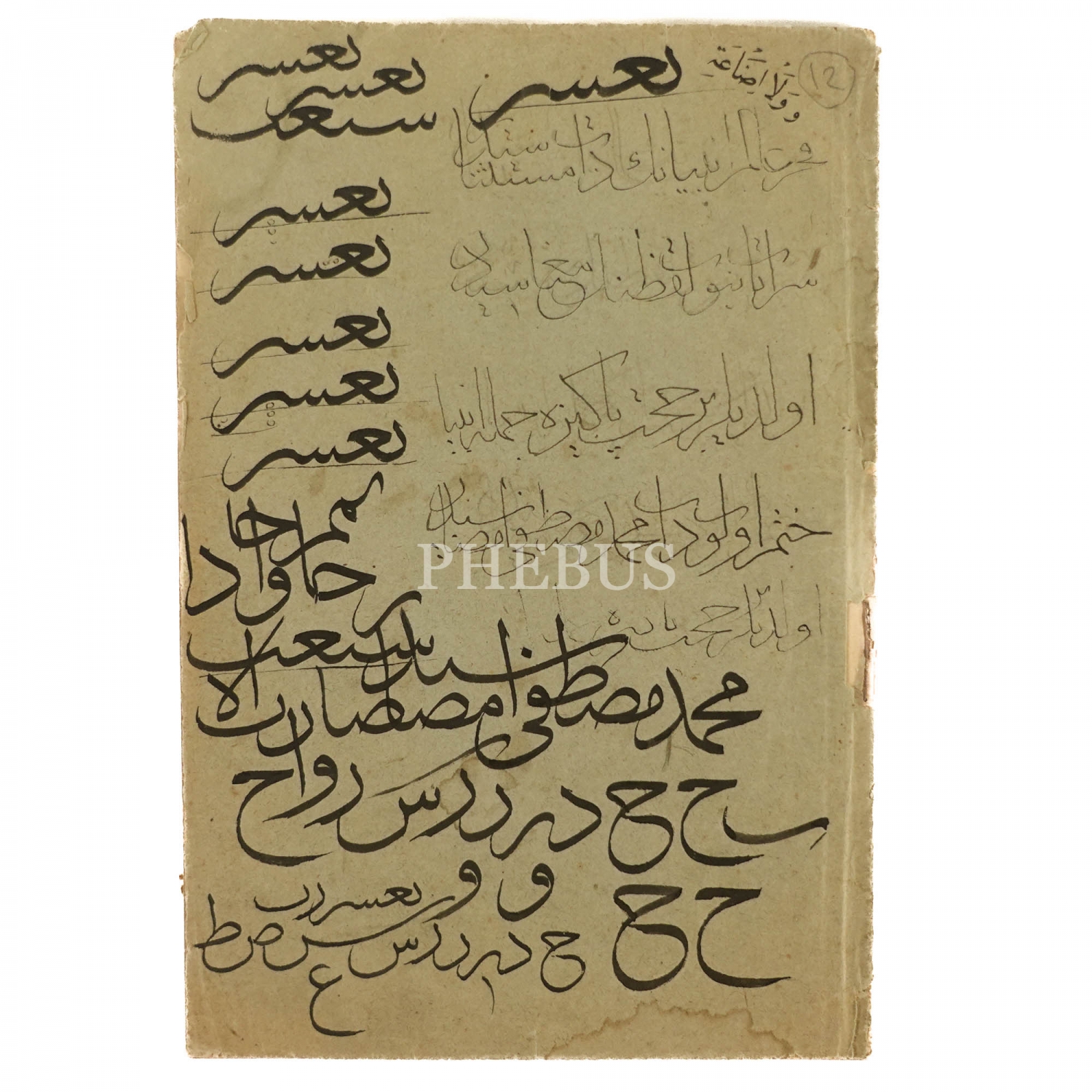 Kitap kapağının iç kısmında kitabın ismini nesih harflerle yazmış, kapağın dış kısmına da sülüs karalamalar yapmıştır. Halim Özyazıcı terekesinden.