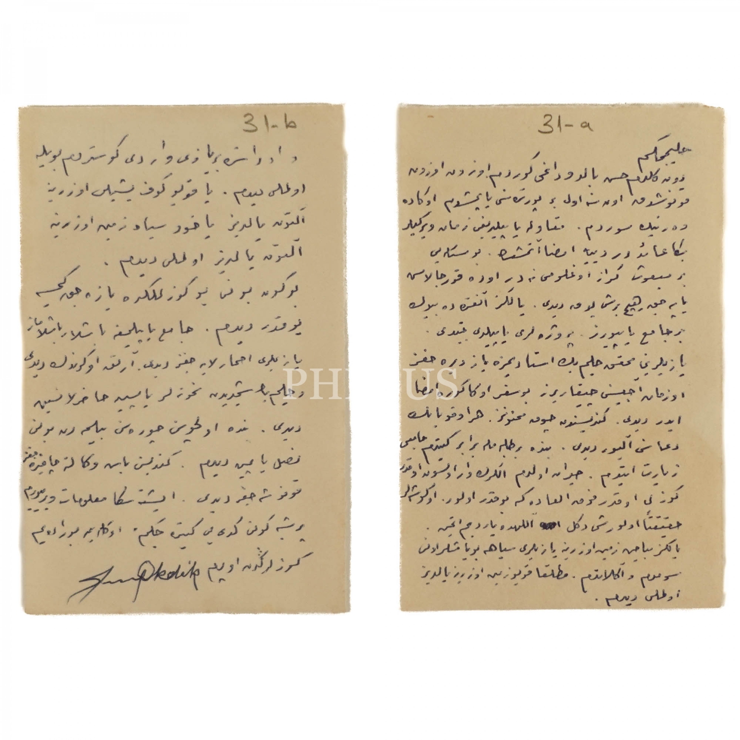 Şeref Akdik´ten Halim Özyazıcı´ya imzalı mektup, iki sayfa, 11x7 cm...