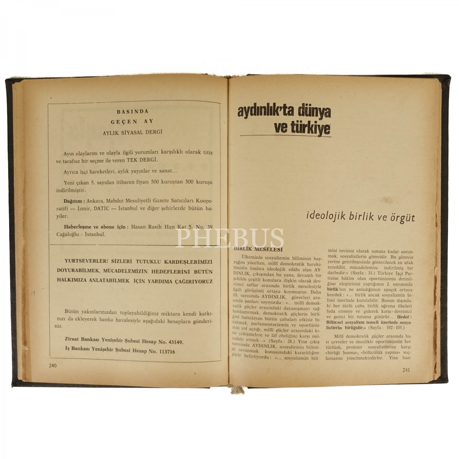 AYDINLIK dergisinin Mayıs 1969 ilâ Ekim 1969 yılları arasında yayımlanan 7-12 arası sayıları -sıralı olarak- tek ciltte, 16x23 cm...