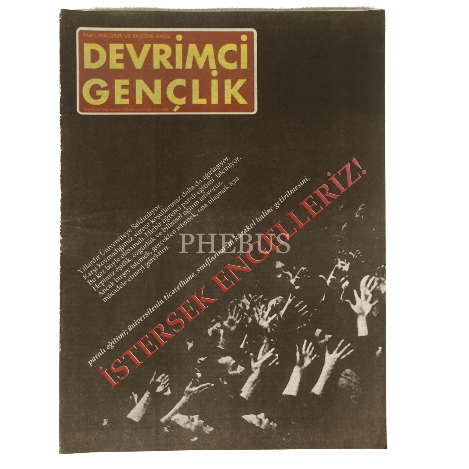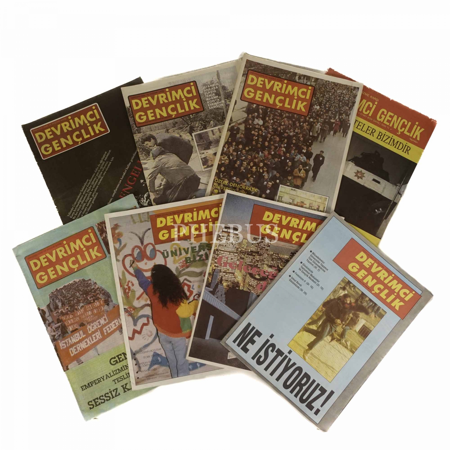 DEVRİMCİ GENÇLİK dergisinin Ocak 1990 ilâ Mart 1993 yılları arasında yayımlanan 8 sayısı, 26x36 cm...