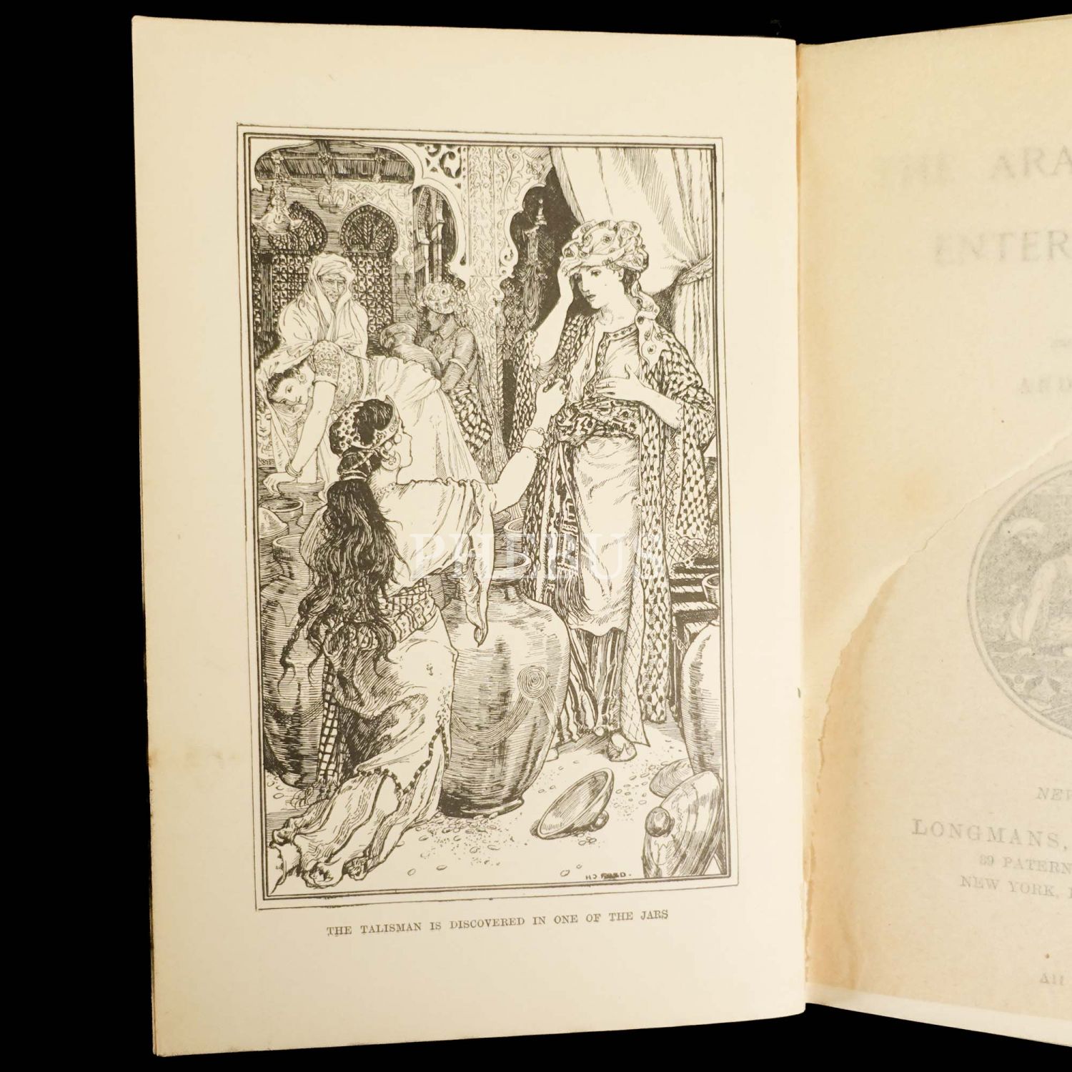 Folklor, mitoloji ve din üzerine yaptığı çalışmalar ve antik masal tercümeleriyle tanınan İskoç yazar Andrew Lang´ın çevirisiyle Binbir Gece Masalları... Kitap içinde 33 adedi tam sayfa olmak üzere toplam 67 tane metin içi illüstrasyon yer almaktadır. Ön kapağı ve sırtı dekoratif görselli, tümüyle bez dönem cildinde. Sayfa kenarları altın yaldızlıdır.