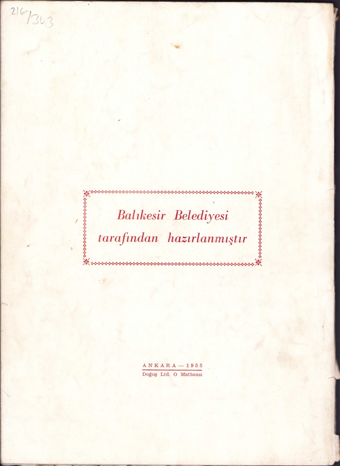 Balıkesir Belediyesi Albümü, 1950 - 1955 Çalışmaları, 88 sayfa, 20x27 cm