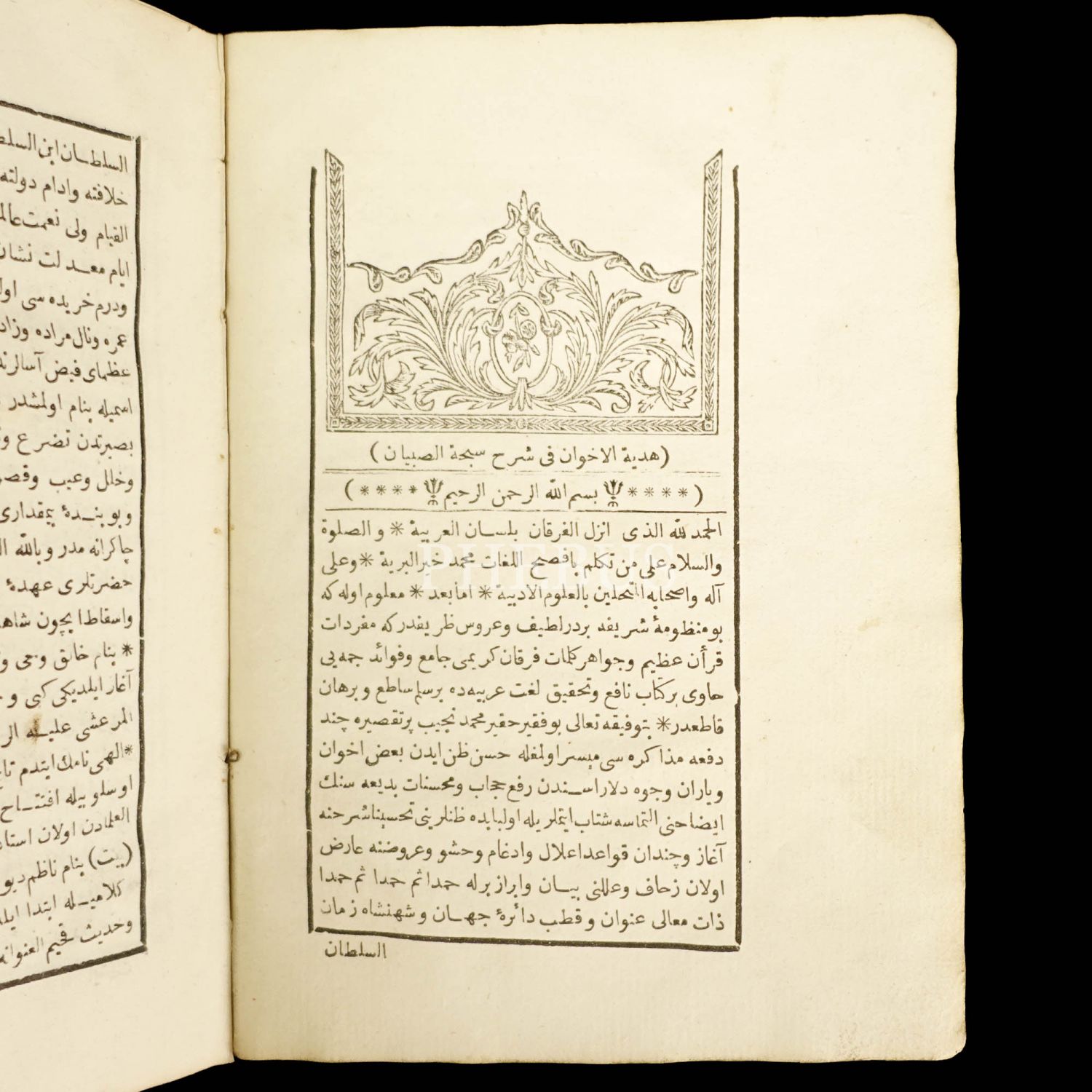 HEDİYYETÜ´L İHVAN Fİ ŞERHİ SUBHA-İ SIBYAN, 1256, Matbaa-i Sahibü´l Lutf ve´l İhsan Sultan Abdülmecid Han (Matbaa-i Amire), 265 sayfa, miklepli deri matba cildinde, 19x14 cm...