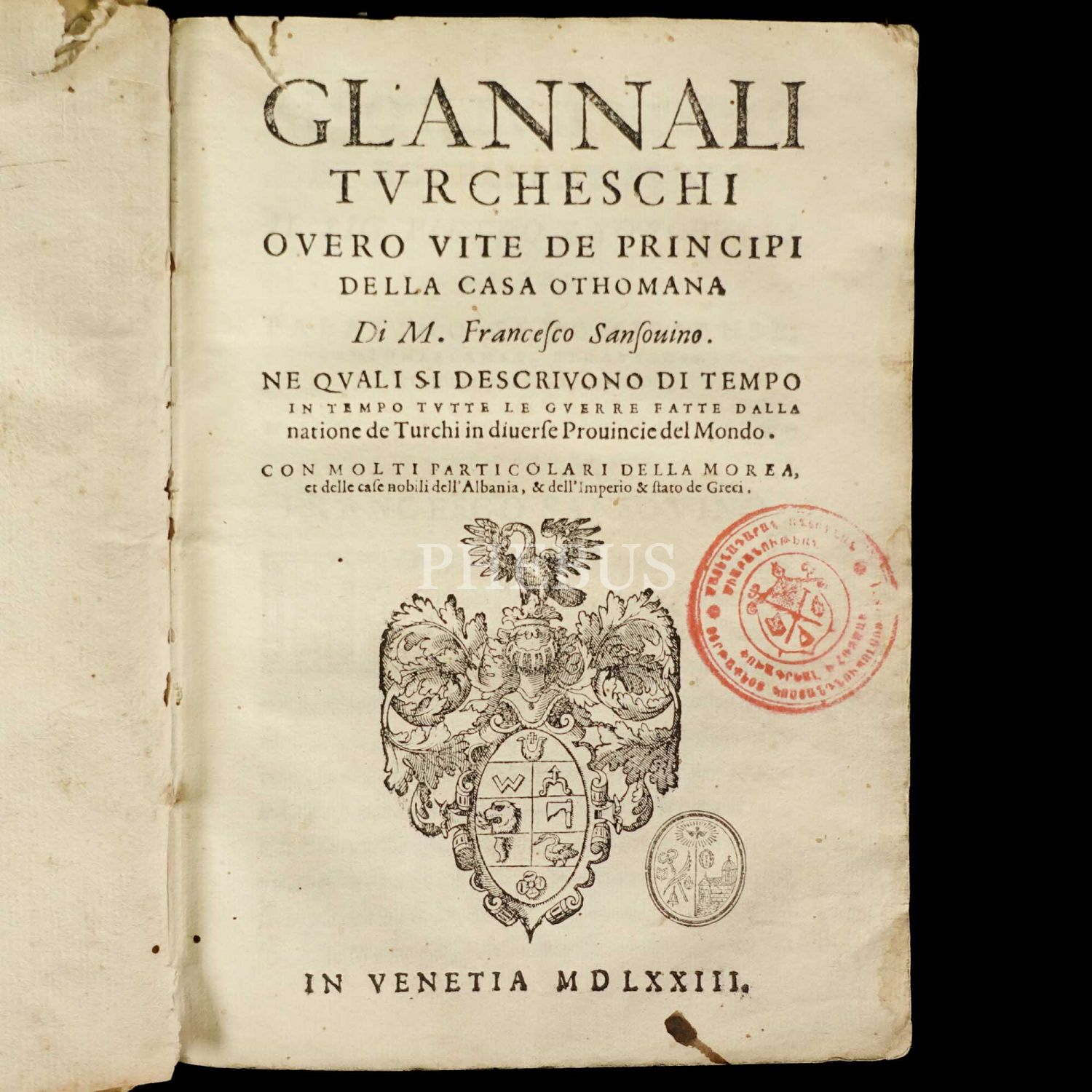 GLANNALI TURCHESCHI OVERO VITE DE PRINCIPI DELLA CASA OTTOMANA (Türk Yıllıkları yahut Osmanlı Yaşamının Temelleri), Francesco Sansovino, 1573, Venedik, İtalyanca, 224 sayfa, vellum cildinde, 20x15 cm...