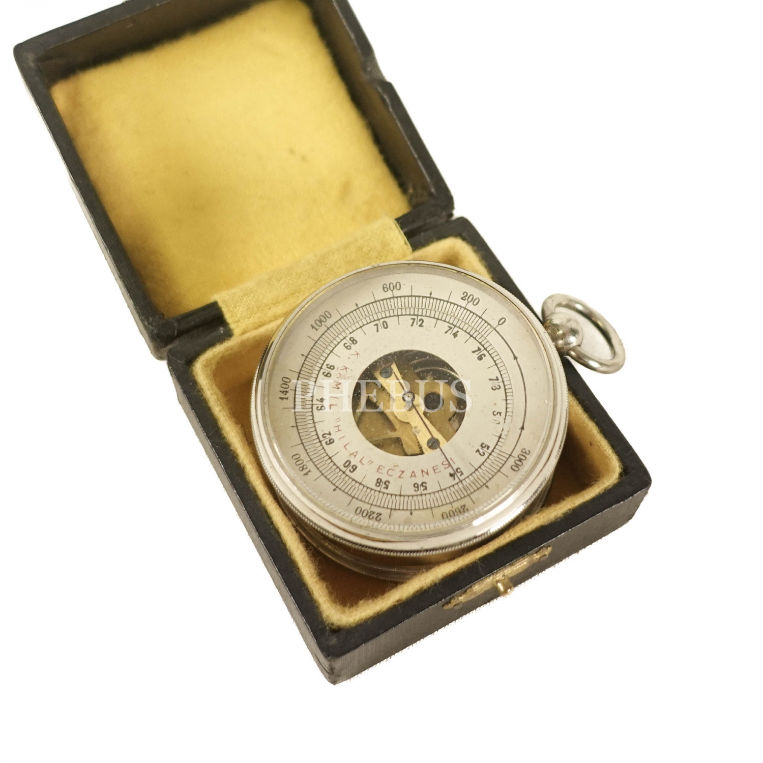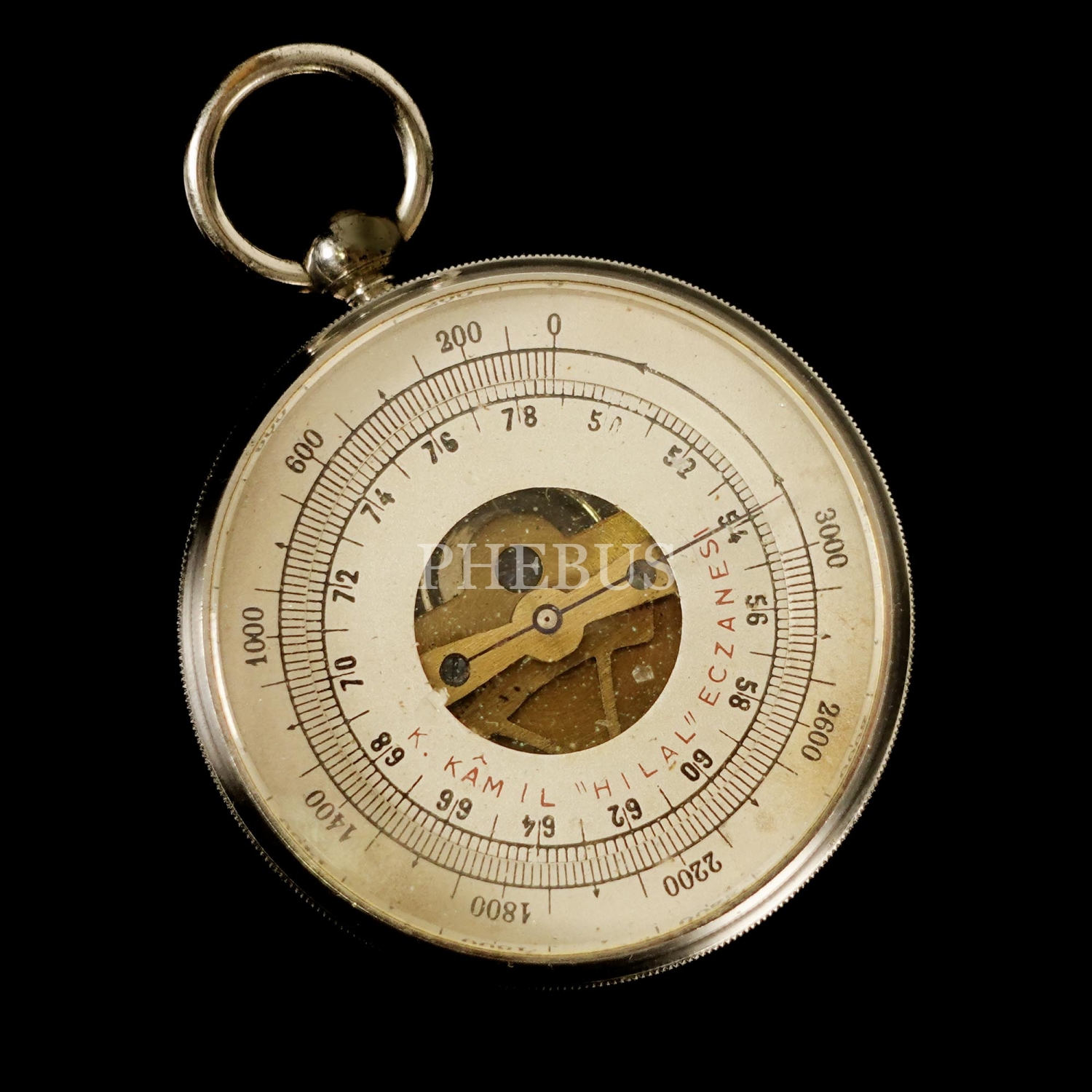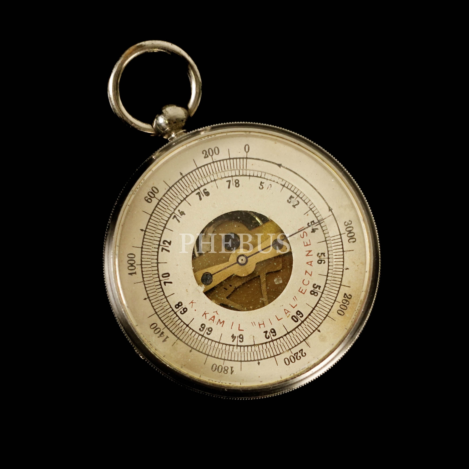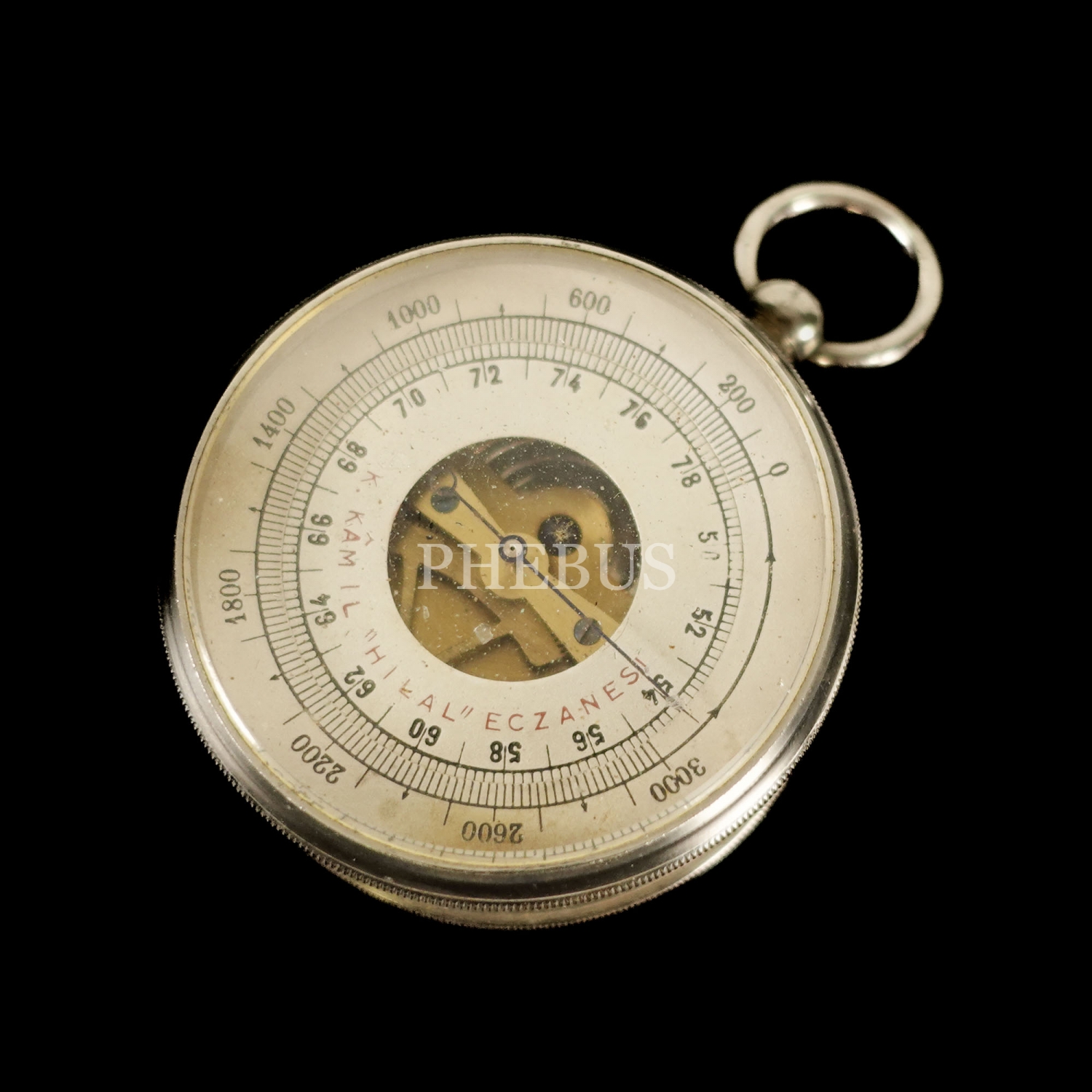 Kadranı K. Kâmil "Hilal" Eczanesi reklamlı barometre ve reomür termometresi (sıcaklık ölçüm aracı), 5,5x3 cm...