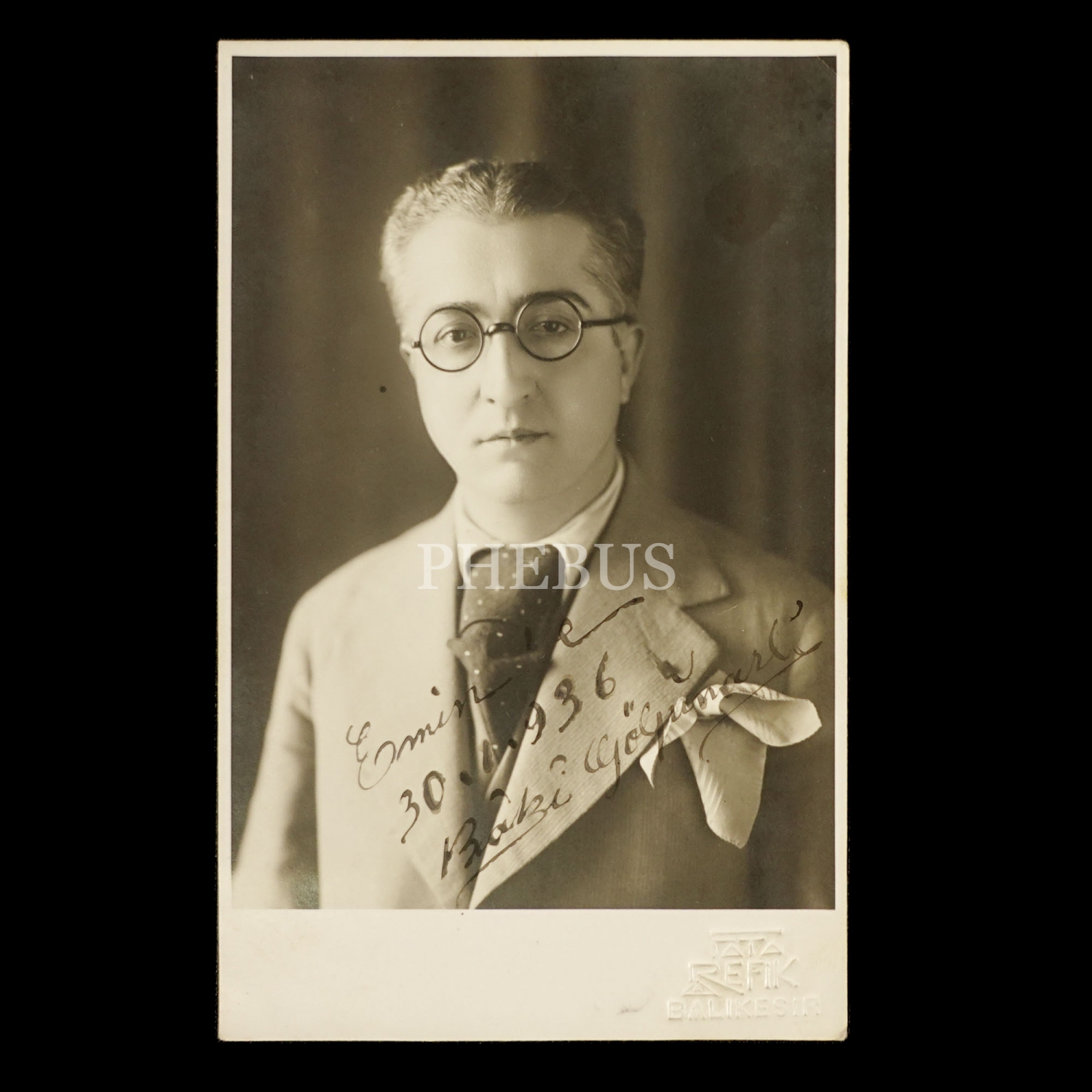 Abdülbaki Gölpınarlı´dan ithaflı ve imzalı fotoğraf, 30.1.1936, 13x8 cm...