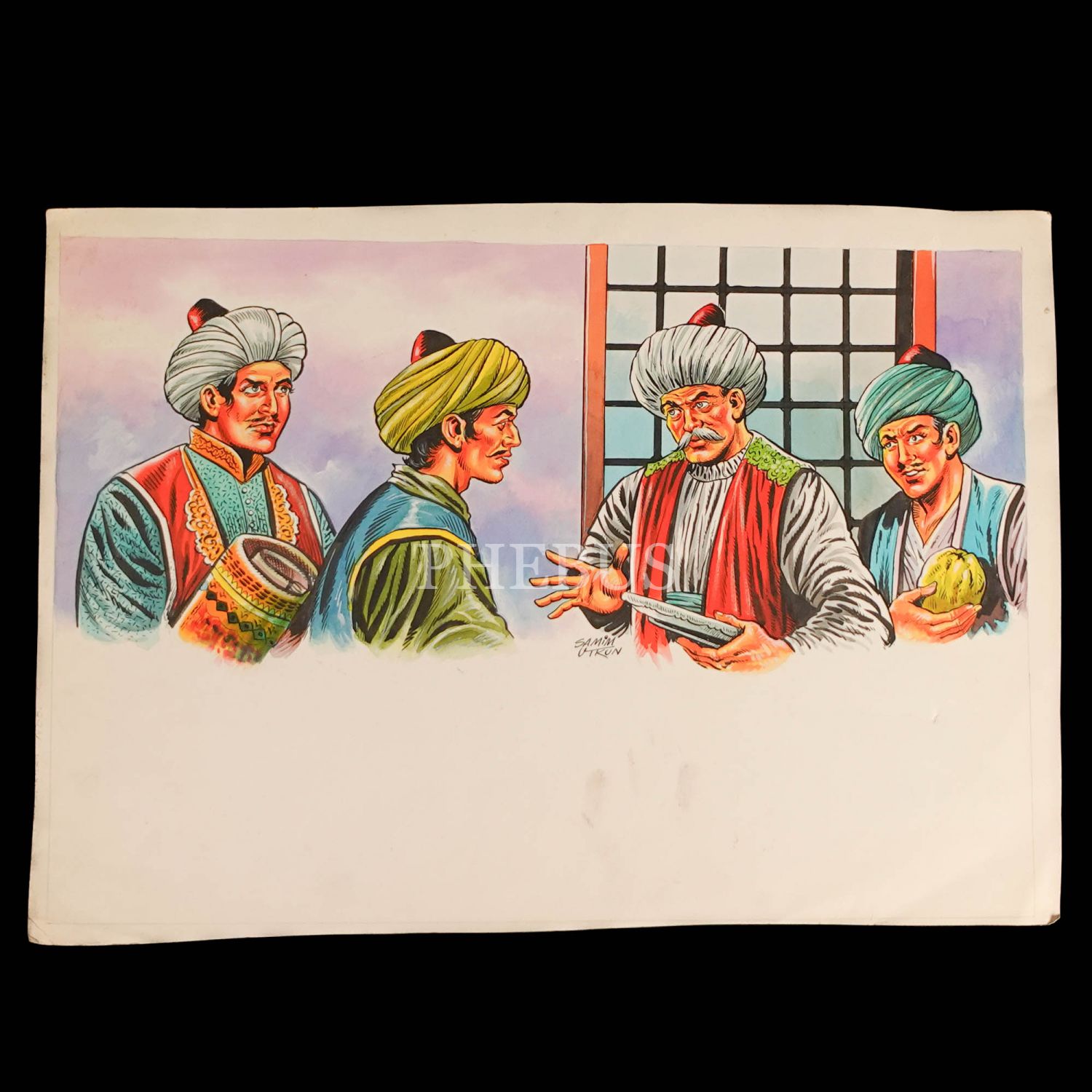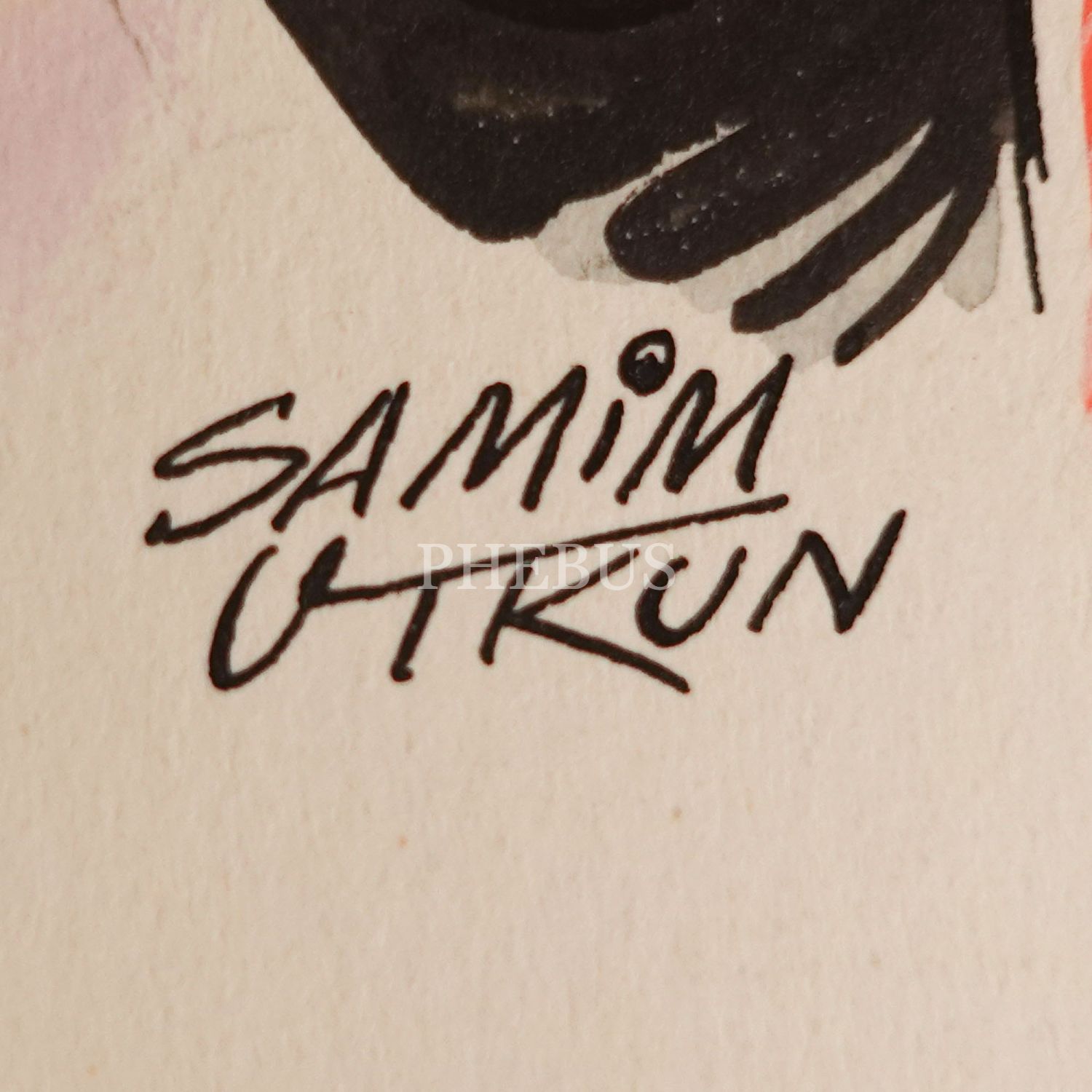 Samim Utkun´dan ıslak imzalı, orijinal Evliya Çelebi çizimi, kâğıt üzeri karışık teknik, 41x29 cm...