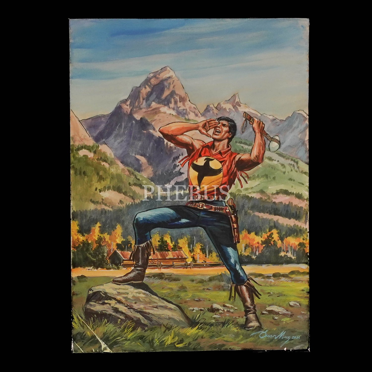 Ömer Muz´dan ıslak imzalı, Zagor konulu orijinal çizim, kâğıt üzeri sulu boya, 2022 tarihli, 26x35 cm...