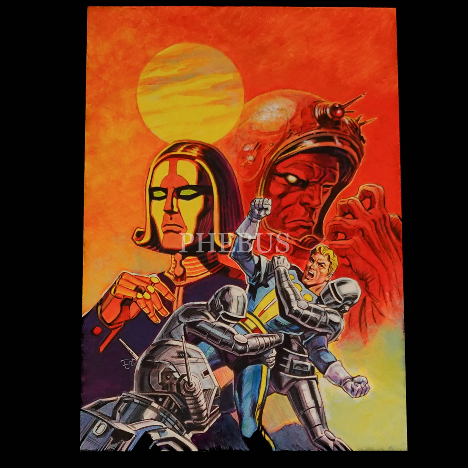 Ertuğrul Edirne´den ıslak imzalı, orijinal Flash Gordon kapak çizimi, kâğıt üzeri guaj boya, 2016 tarihli, 30x42 cm...