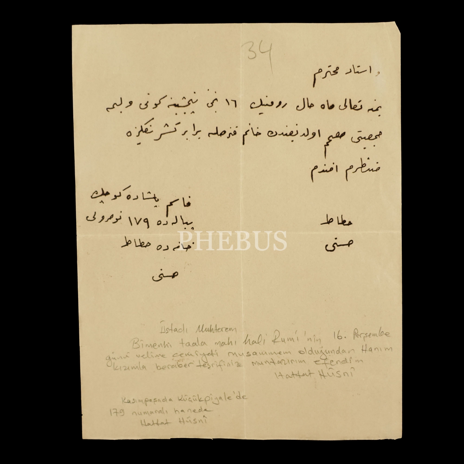 "Üstad-ı muhterem, ...hanım kızımla beraber teşrifinize muntazırım efendim..."