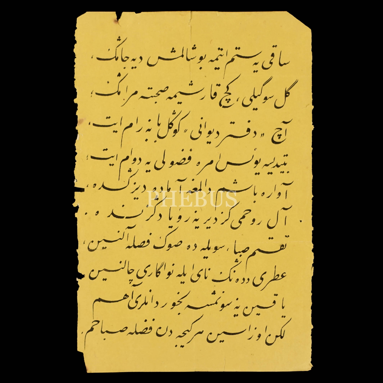Talik yazı, beş beyitlik şiir, 23x15 cm...