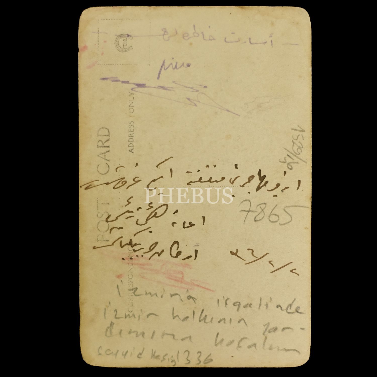 Ön yüzün alt tarafında elle yazılmış yazı: "İhtilas-ı vatan 9 Eylül 38"