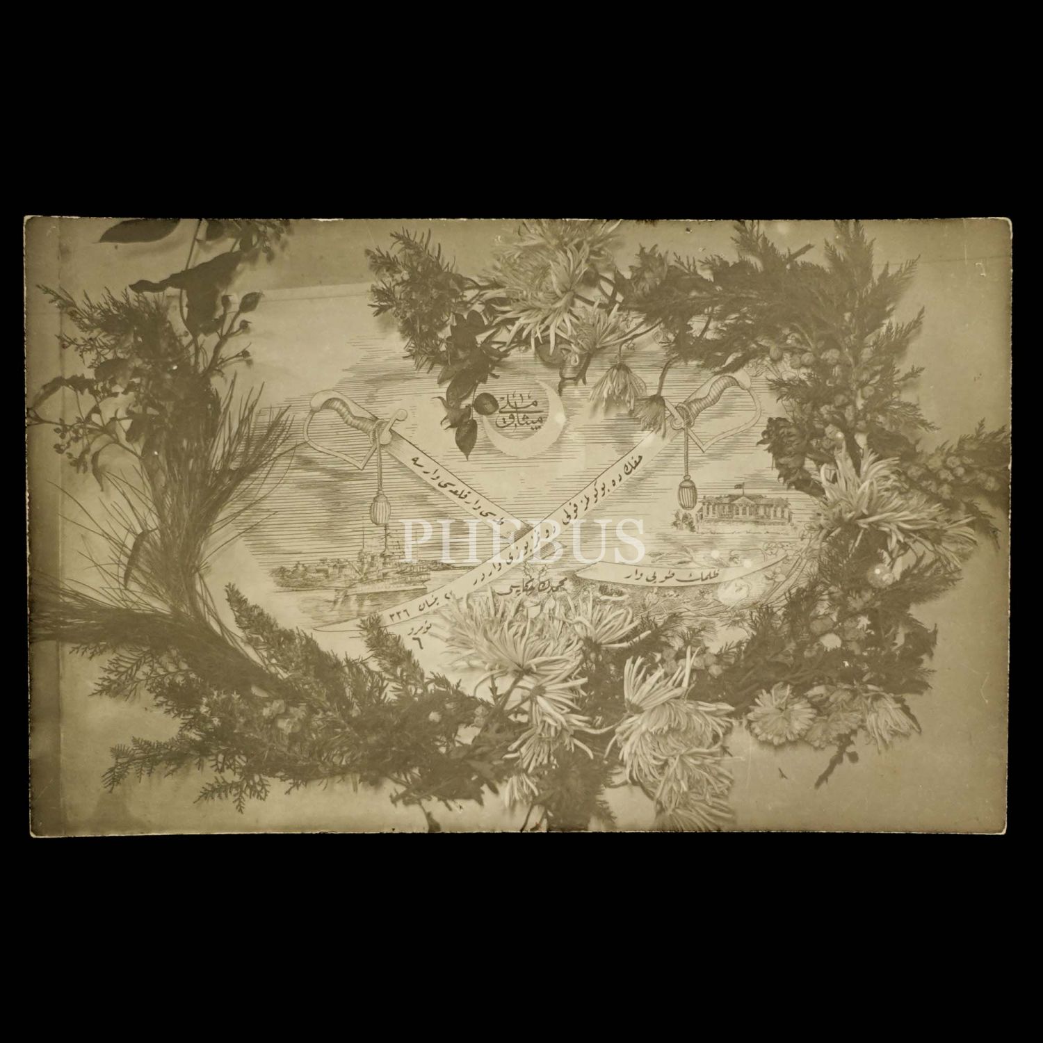 Türkiye Büyük Millet Meclisi ve İzmir silüeti görselli, üzeri zafer şiiri yazılı kılıçlarla bezeli kartpostal, 14x9 cm...