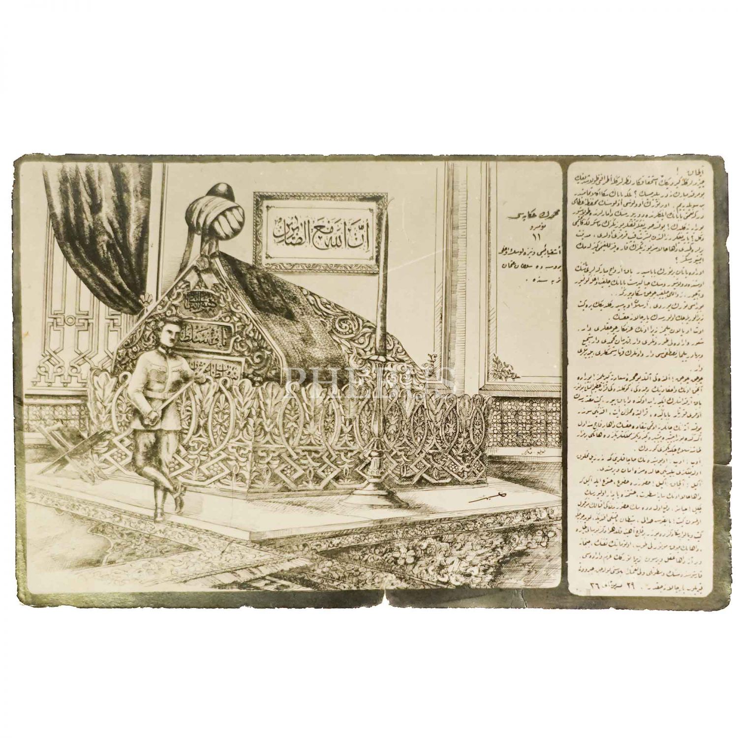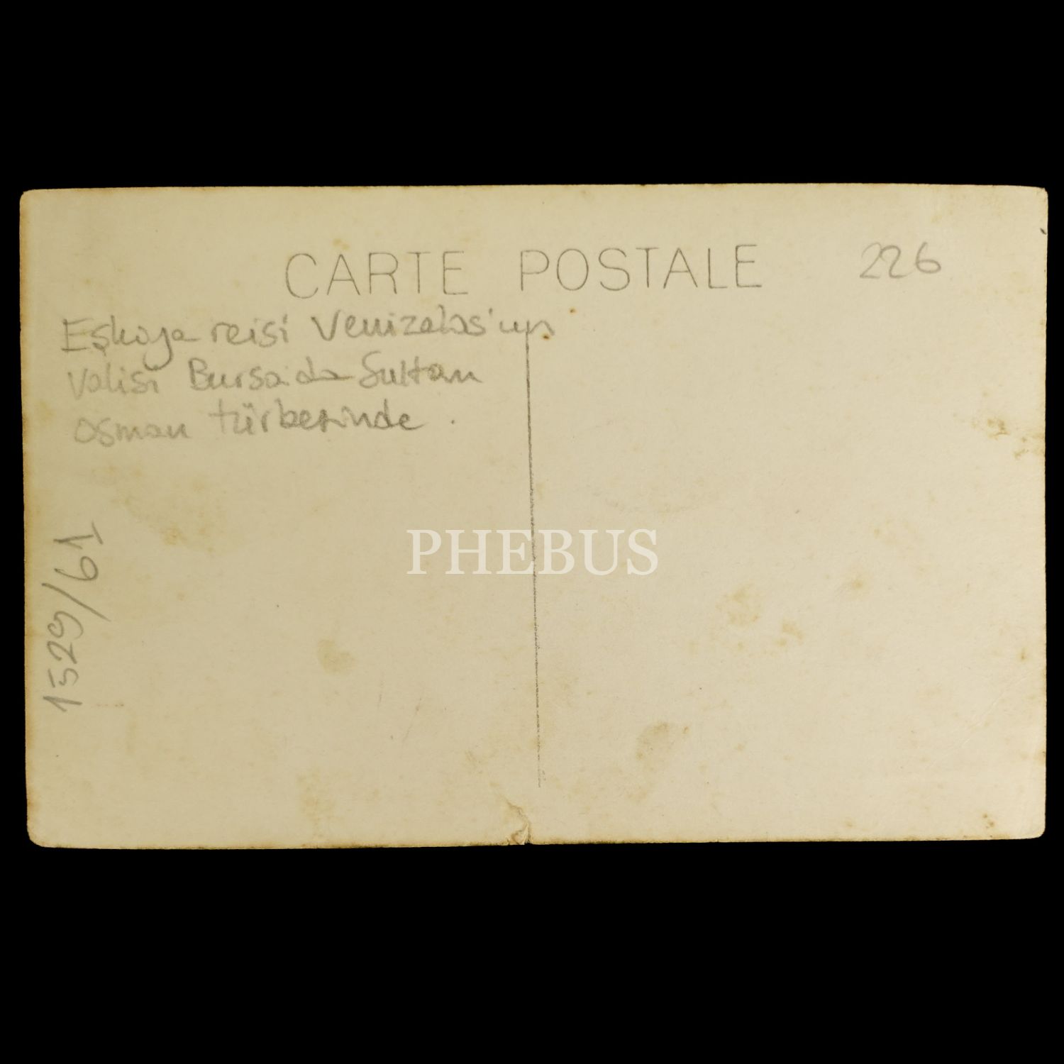 "Eşkıya reisi Venizelos´un oğlu Bursa´da Sultan Osman Türbesi´nde" yazılı ve "Mehmed´in Hikâyesi Numara 11" başlıklı kartpostal, ed. Foto Mükerrem, 14x9 cm...