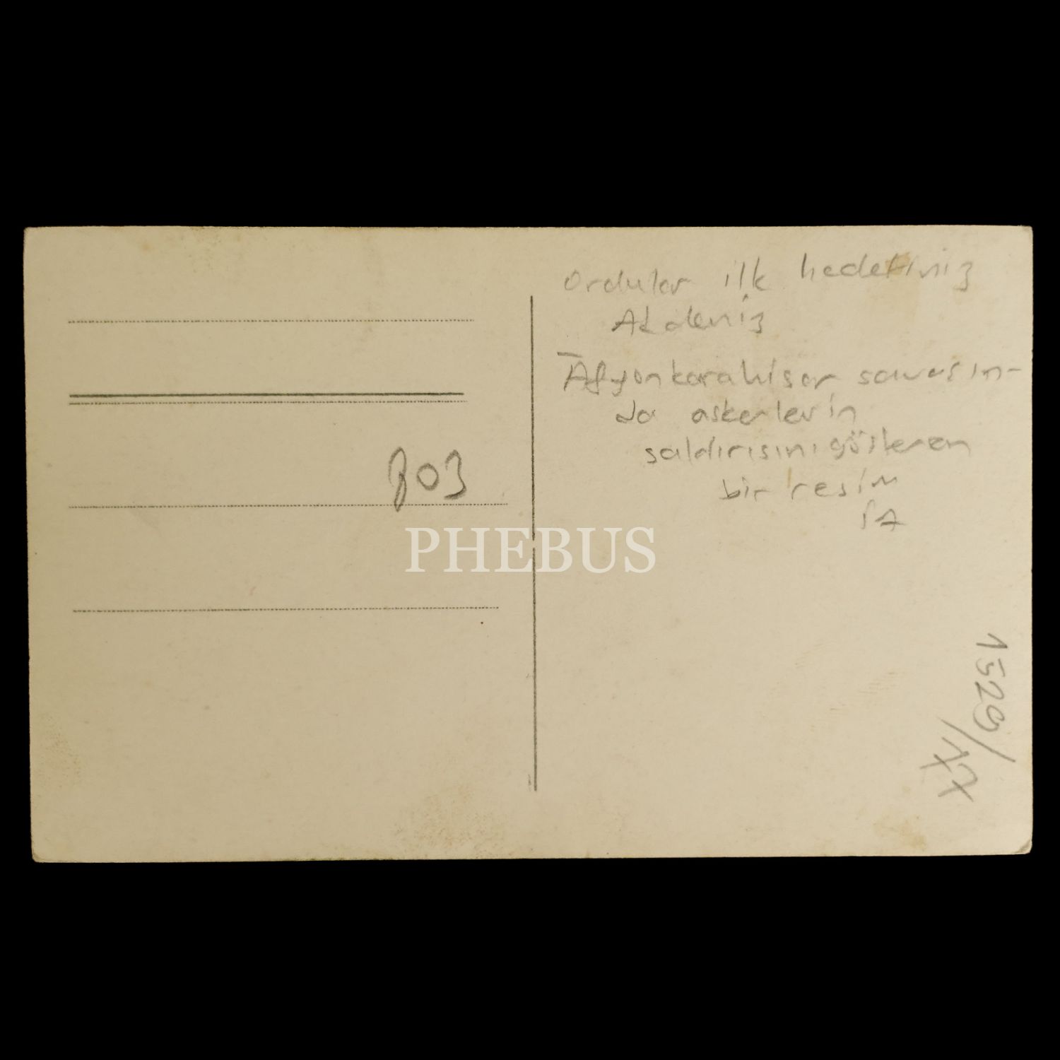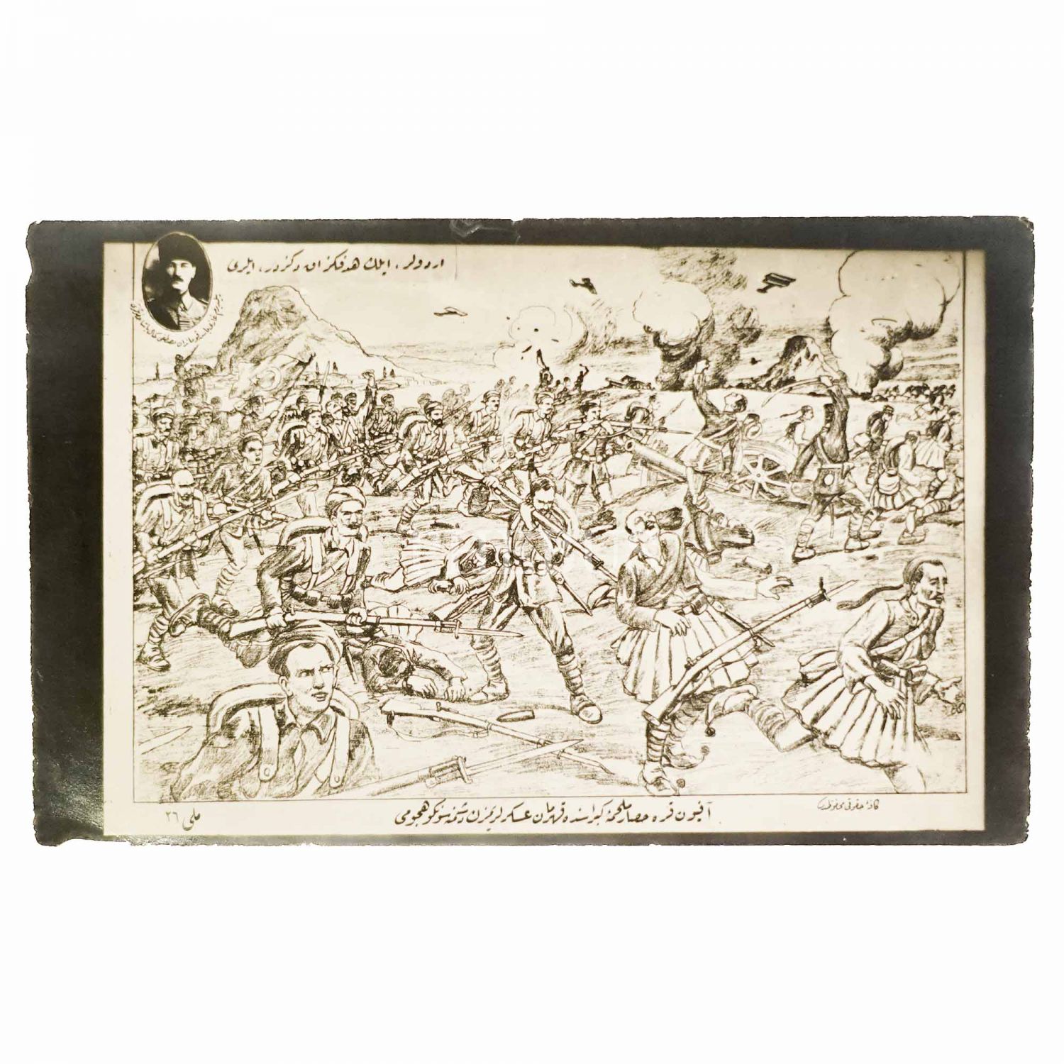 "Yıldırım Gazi Başkumandan Mustafa Kemal Paşa Hazretleri"nin görseli ve "Ordular, ilk hedefiniz Akdeniz´dir, ileri!" emri altında düşmana karşı savaşan Mehmetçikler görselli, "Afyonkarahisar Savaşı´nda kahraman askerimizin düşmana süngü hücumu" başlıklı kartpostal, 14x9 cm...