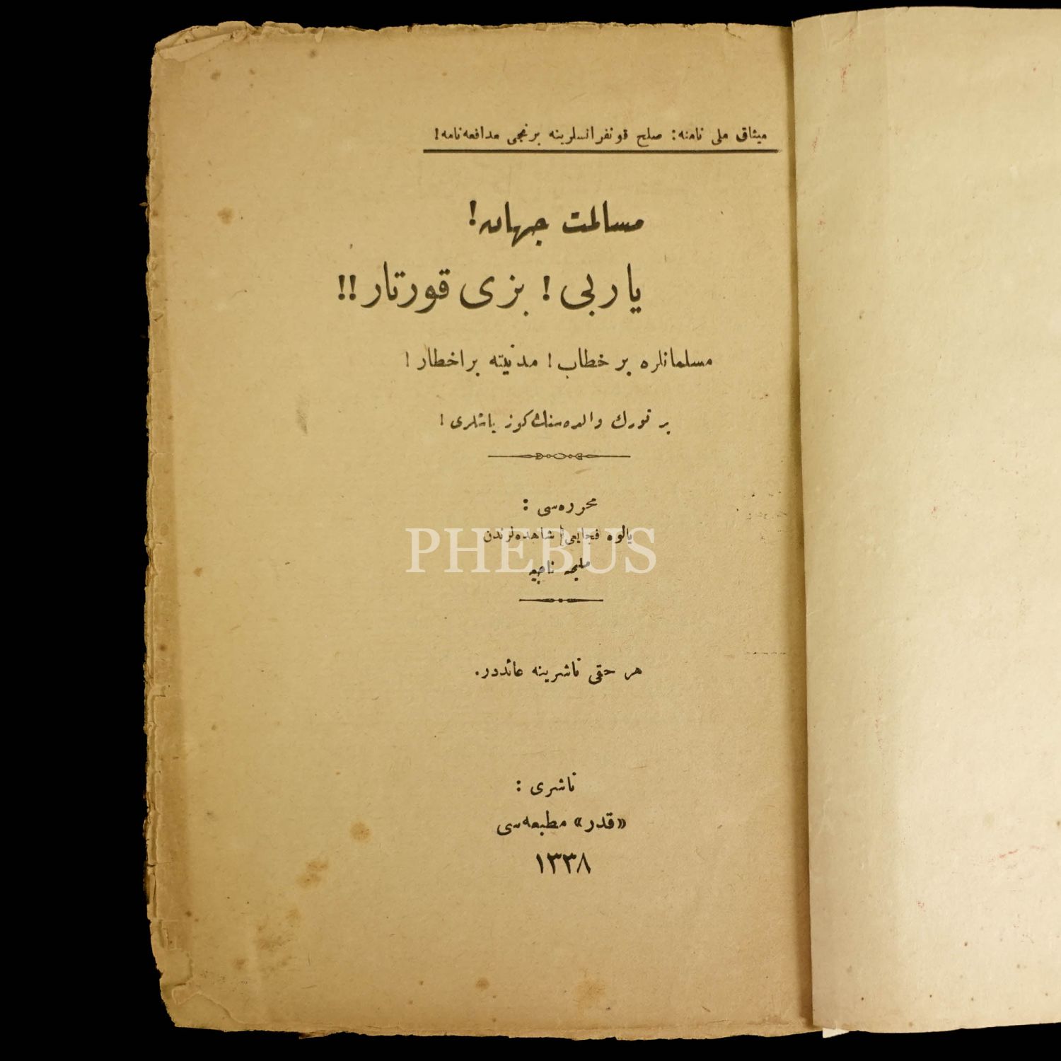 "Müslümanlara bir hitap! Medeniyete bir ihtar! Bir Türk validesinin gözyaşları!",