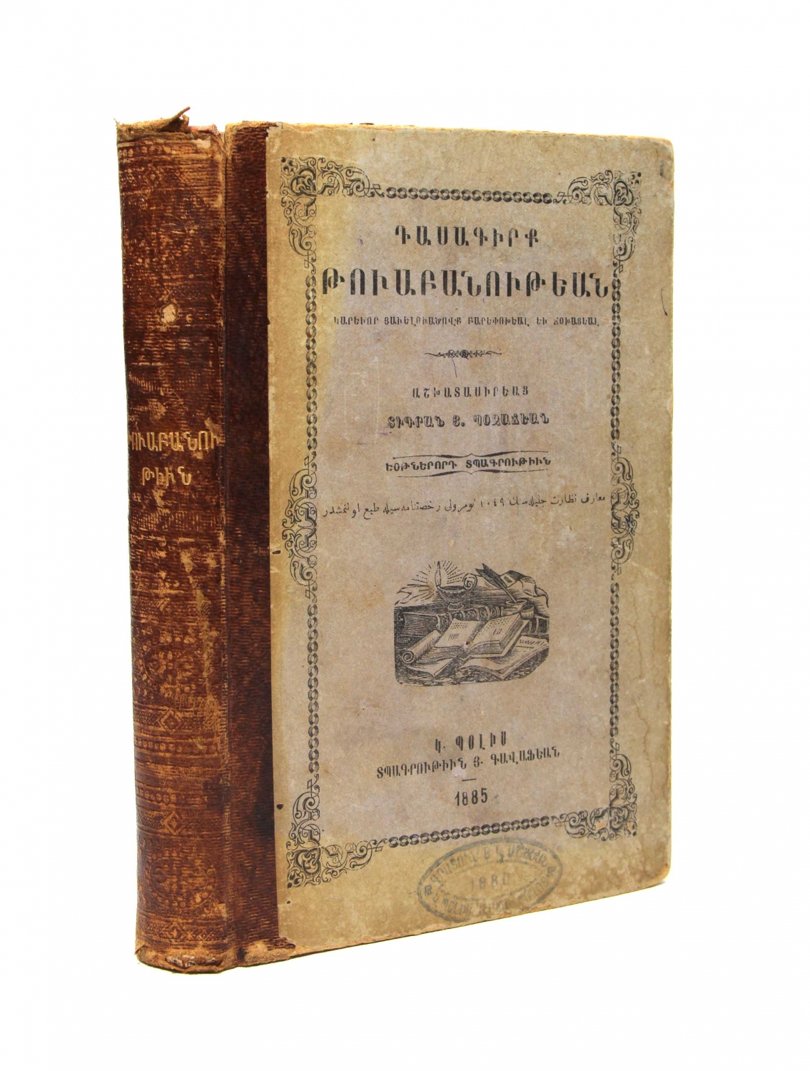 Ermenice Matematik kitabı, 1885 tarihli, 492 sayfa, 13x20 cm.