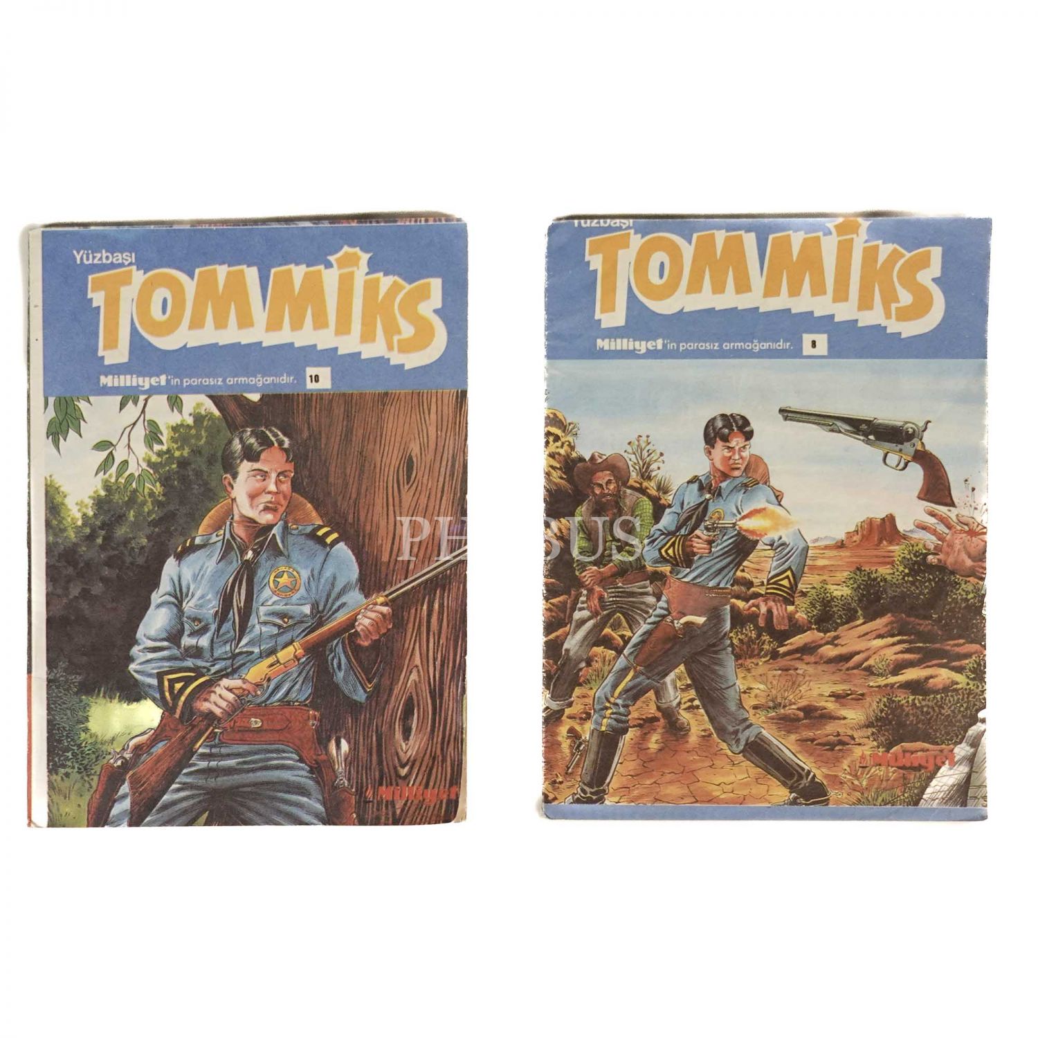 Milliyet gazetesinin armağanı olarak basılmış iki adet YÜZBAŞI TOMMIKS ve BARBO macerası (arkalı-önlü), (No. 8-10), 14x18 cm...