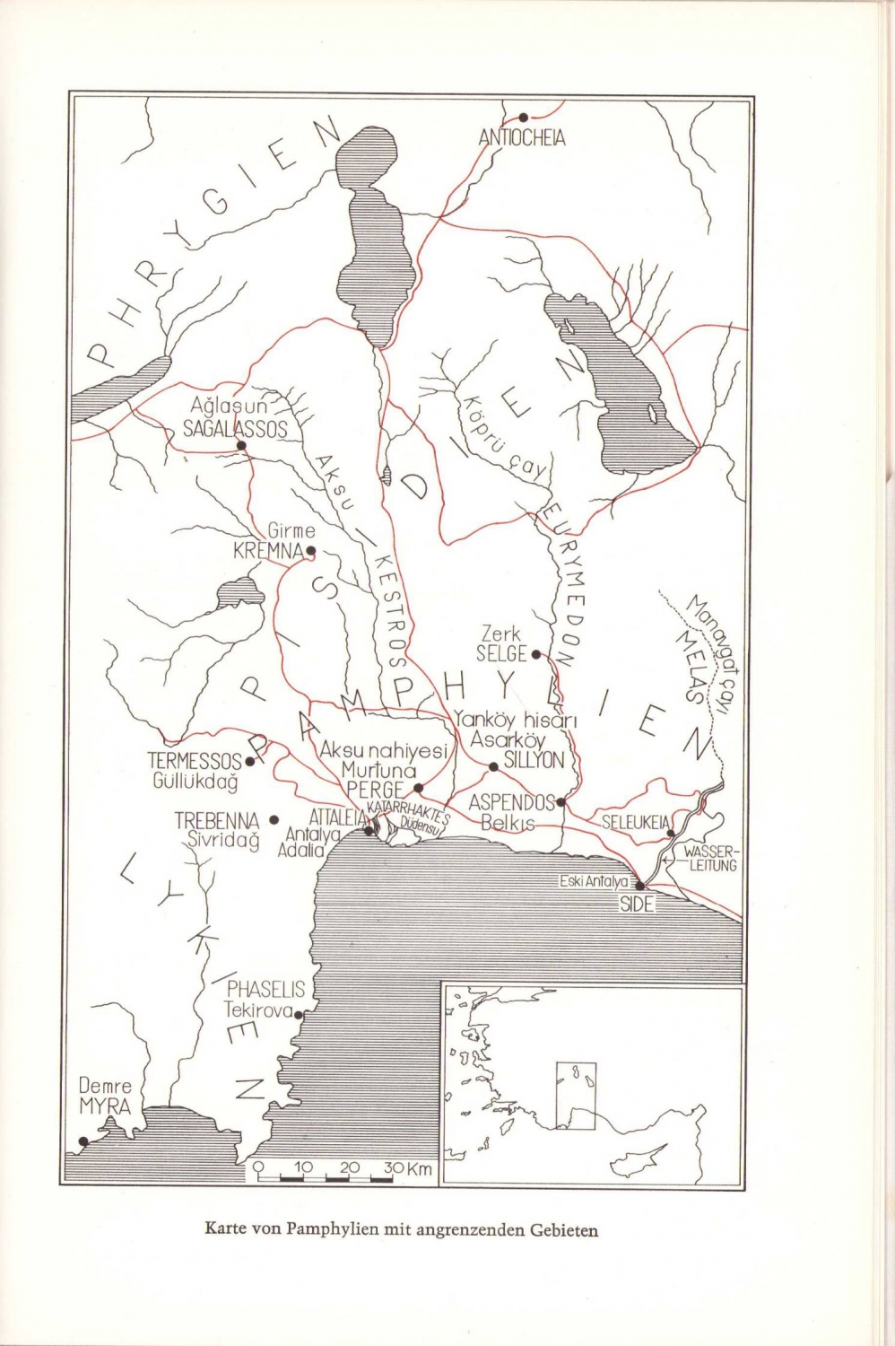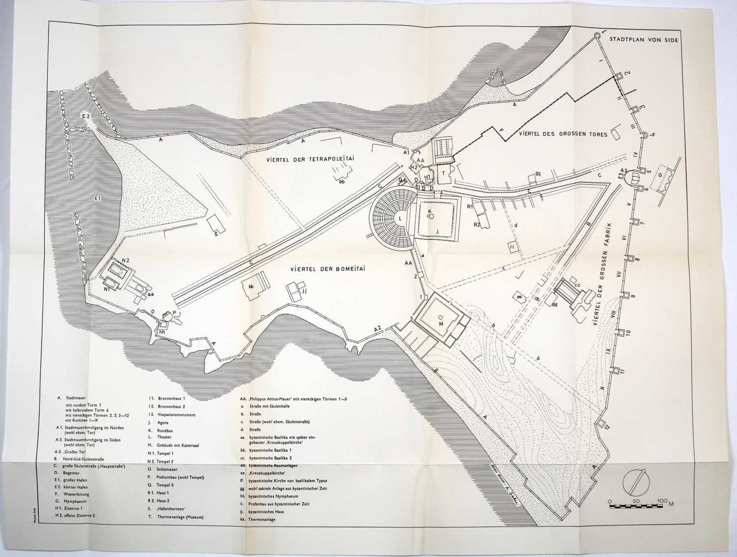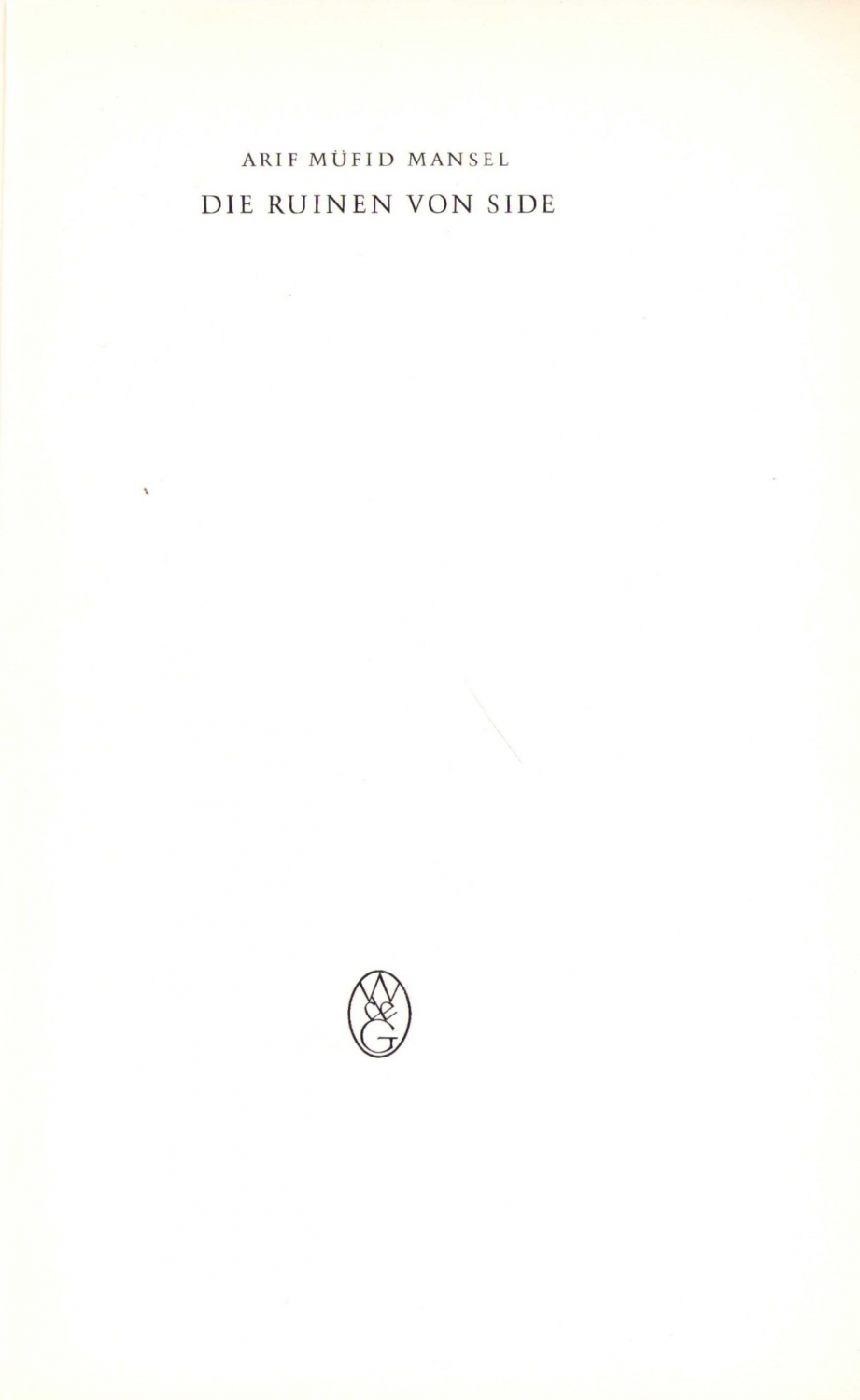Die Ruinen Von Side [Side Harabeleri], Arif Müfid Mansel, Yazarından imzalı ve ithaflı, 1963, Walter de Gruyter&Co, Berlin, Almanca, 199 sayfa, 16x24 cm.